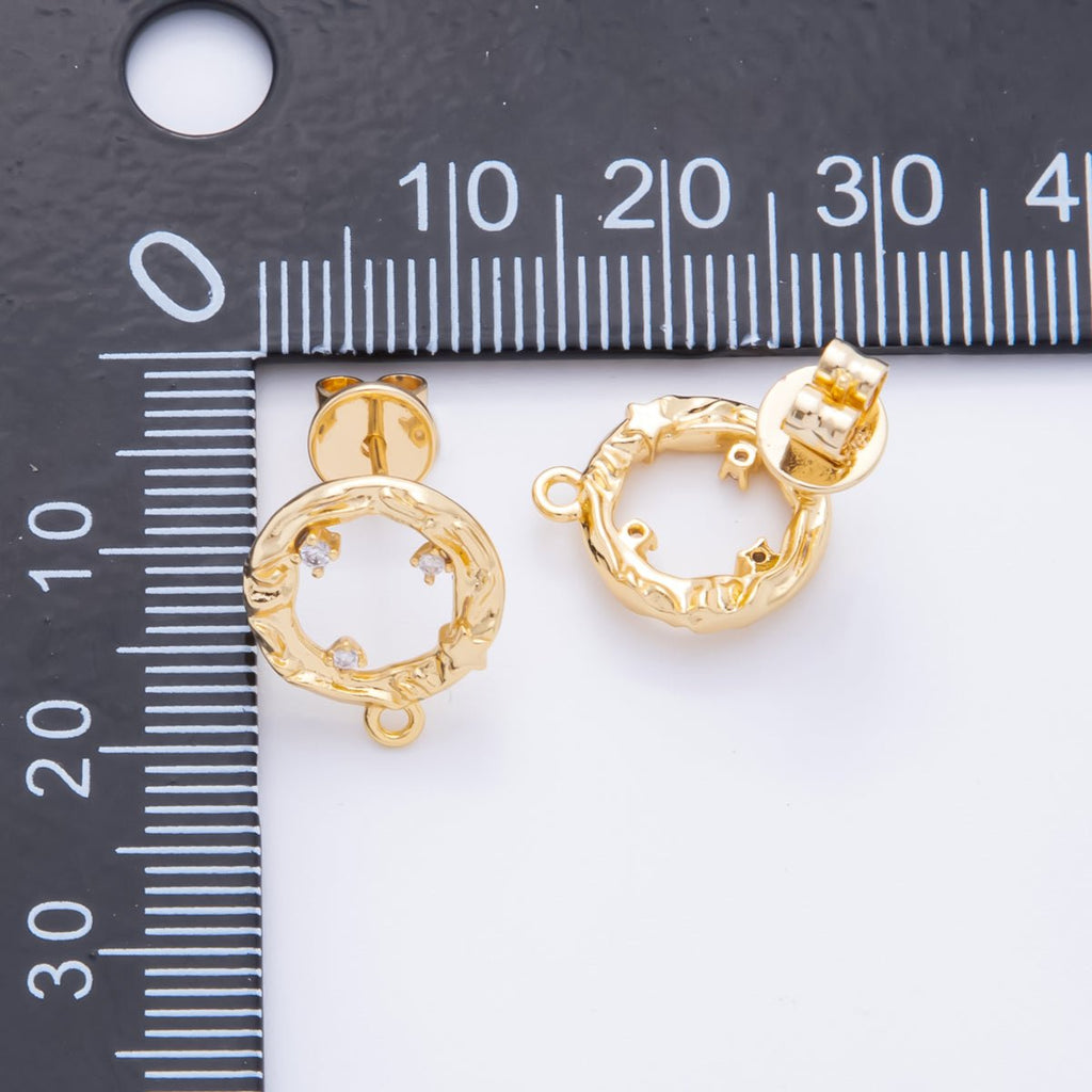 18K Gold Filled 15mm Clear CZ Cluster Open Molten Round Drop Stud Earrings Findings with Closed Loop for Charm | Z1363