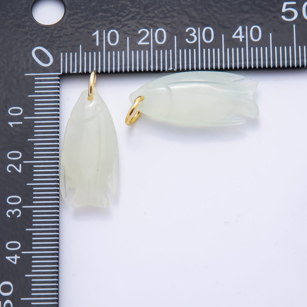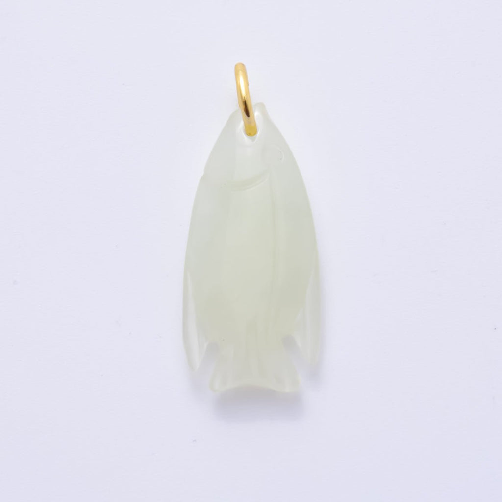 18K Gold Filled 31mm Jade Frosted Fish Gemstone Charm | AH827