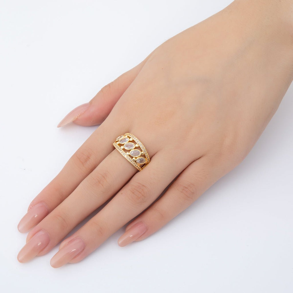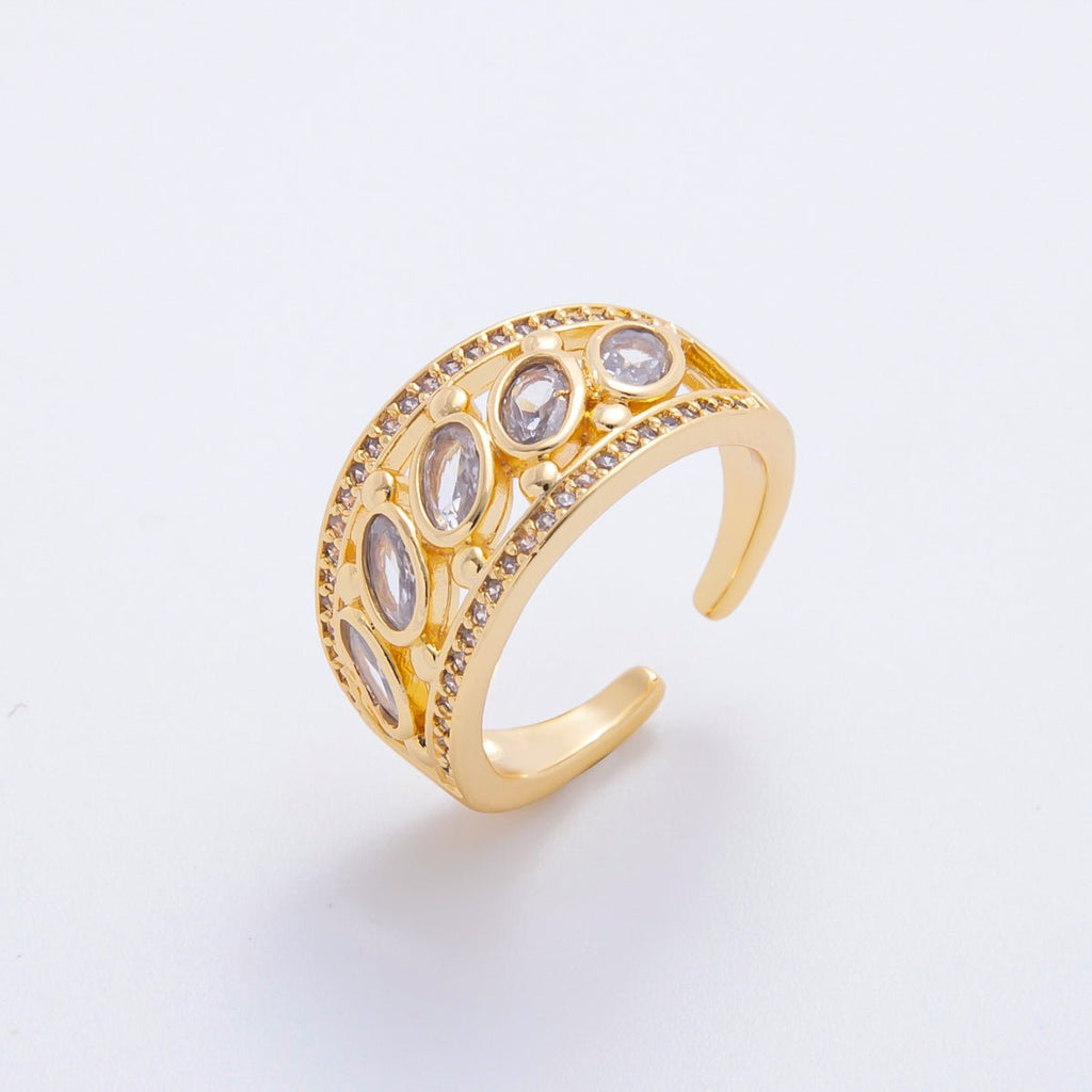 18K Gold Filled Oval Clear CZ Micro Paved CZ Wide Ring | O437