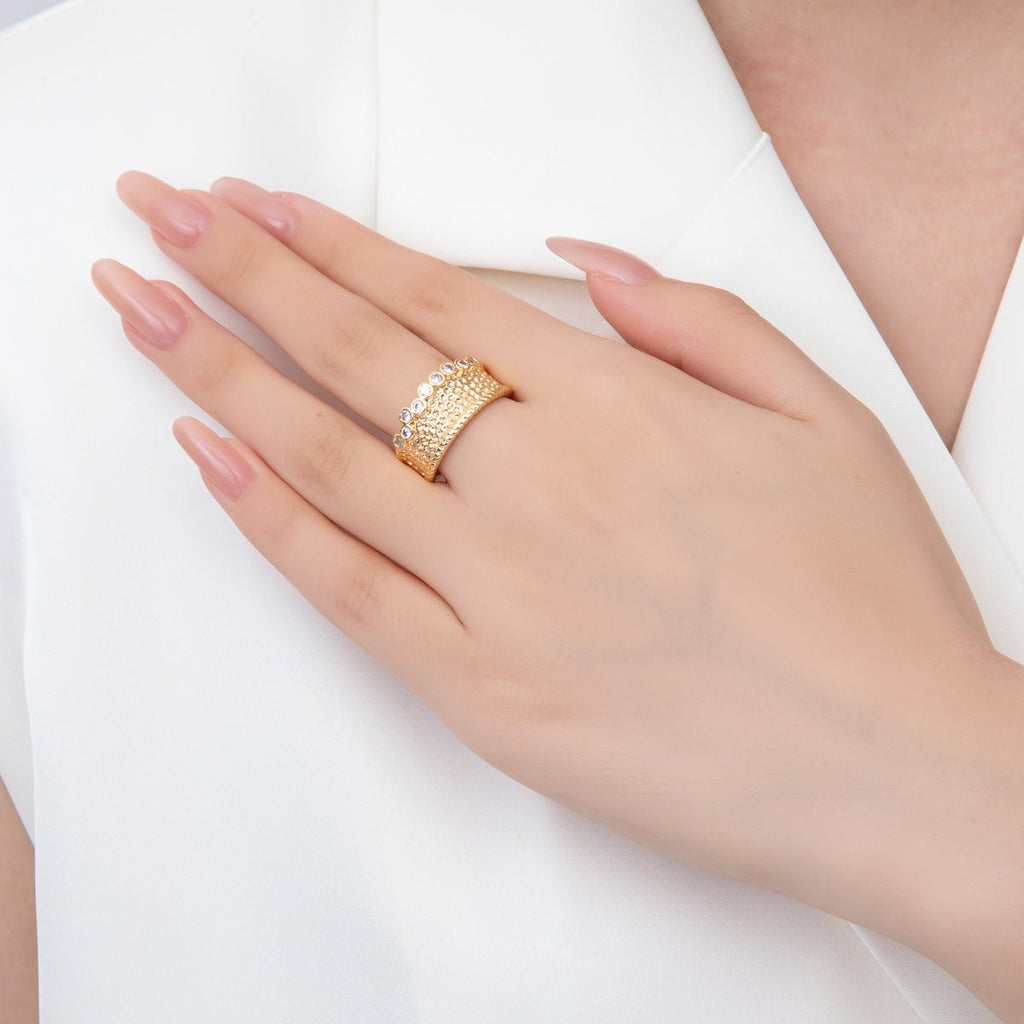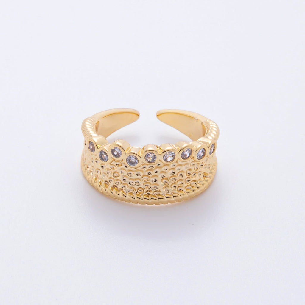 18K Gold Filled Micro Paved CZ Dotted Texture Dome Open Ring | O476