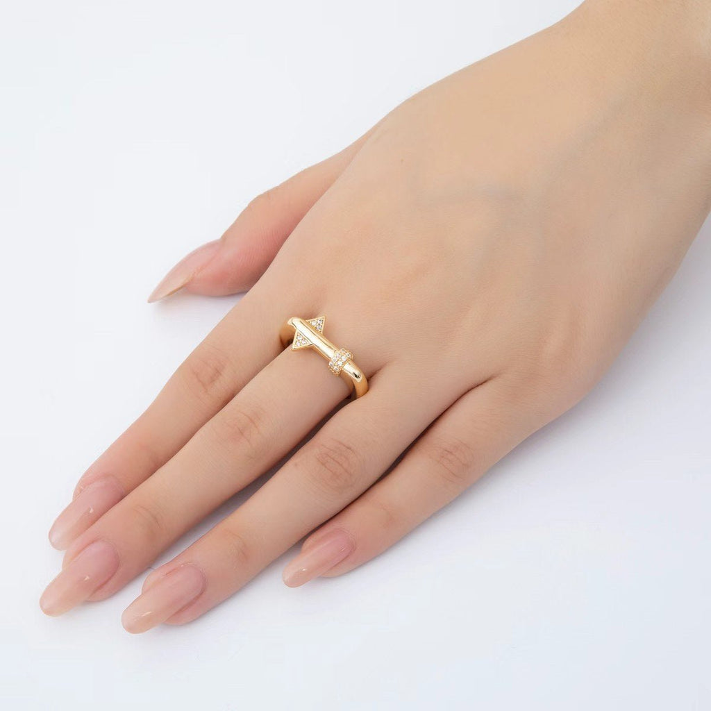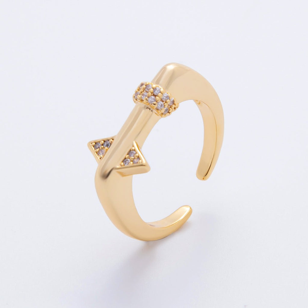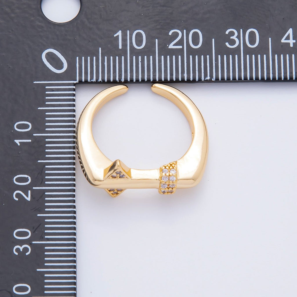 18K Gold Filled Micro Paved CZ Geometric Bar Thin Signet Ring Jewelry | O441