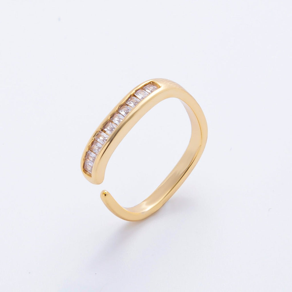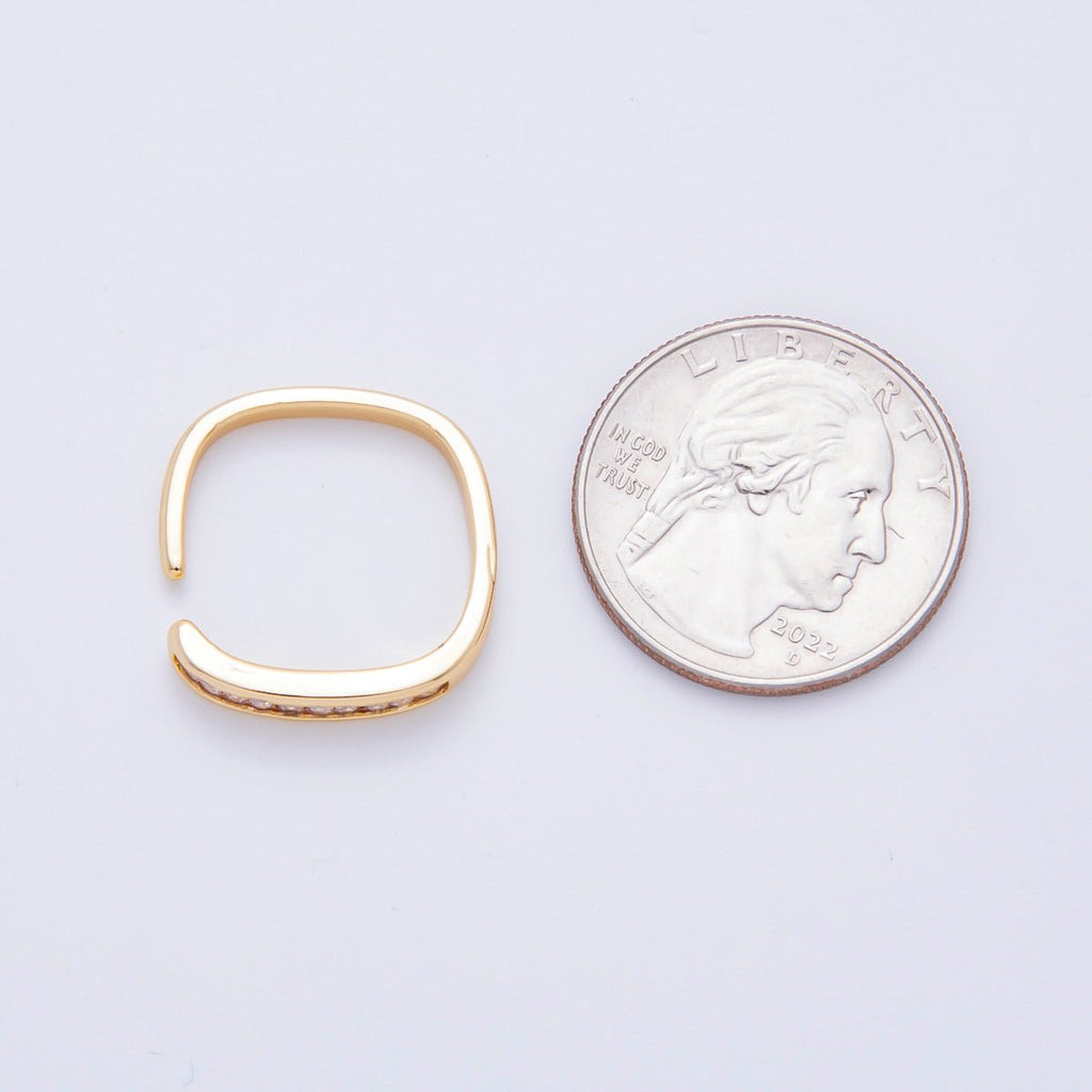 18K Gold Filled Micro Paved CZ Modern Square Edgy Open Ring | O547
