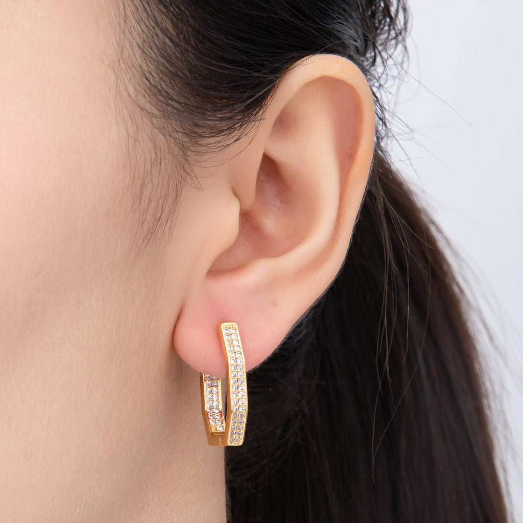 18K Gold Filled Micro Paved CZ Octagon Geometrical Lever Back Hoops Earrings | AJ220