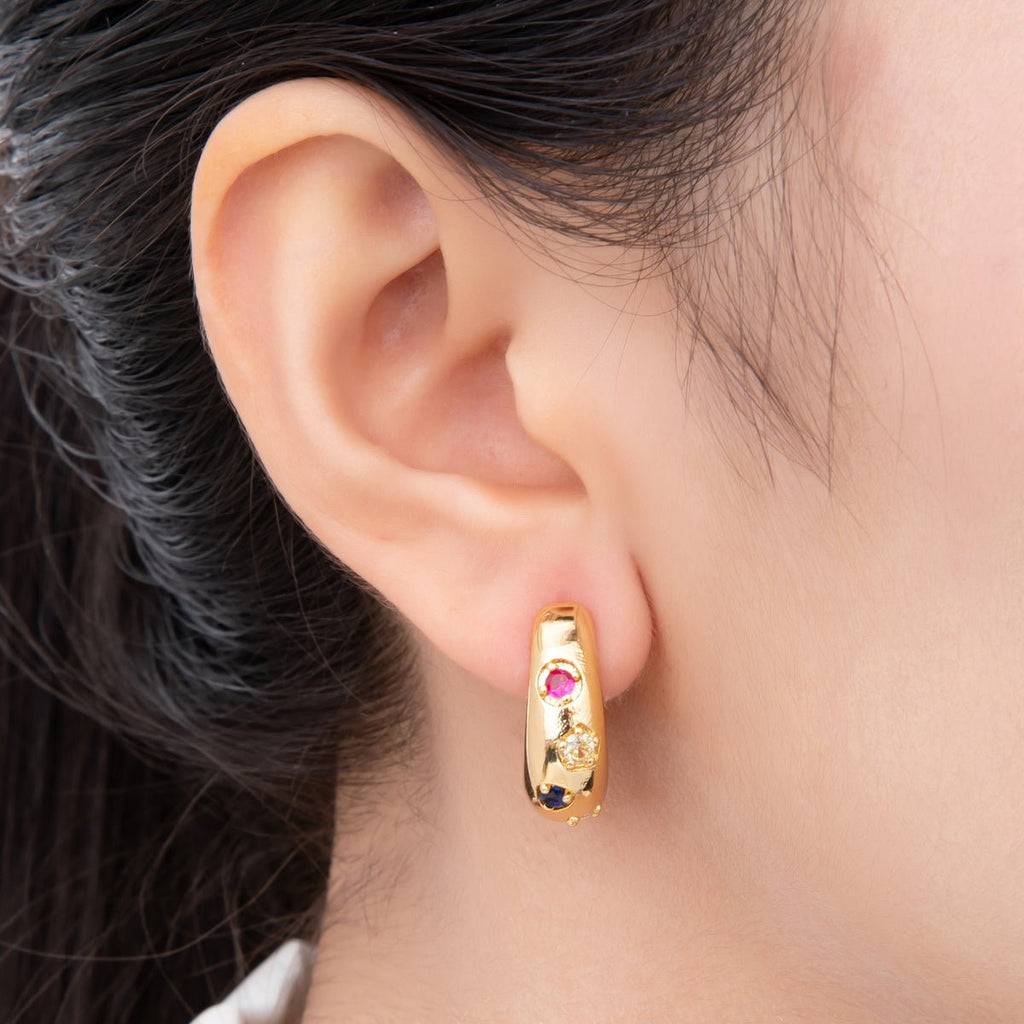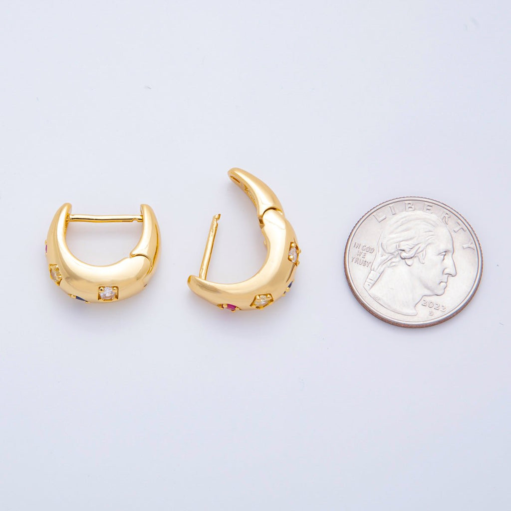 18K Gold Filled Multicolor Round CZ Dainty Dome Crescent Moon Lever Back Hoops Earrings | AJ221