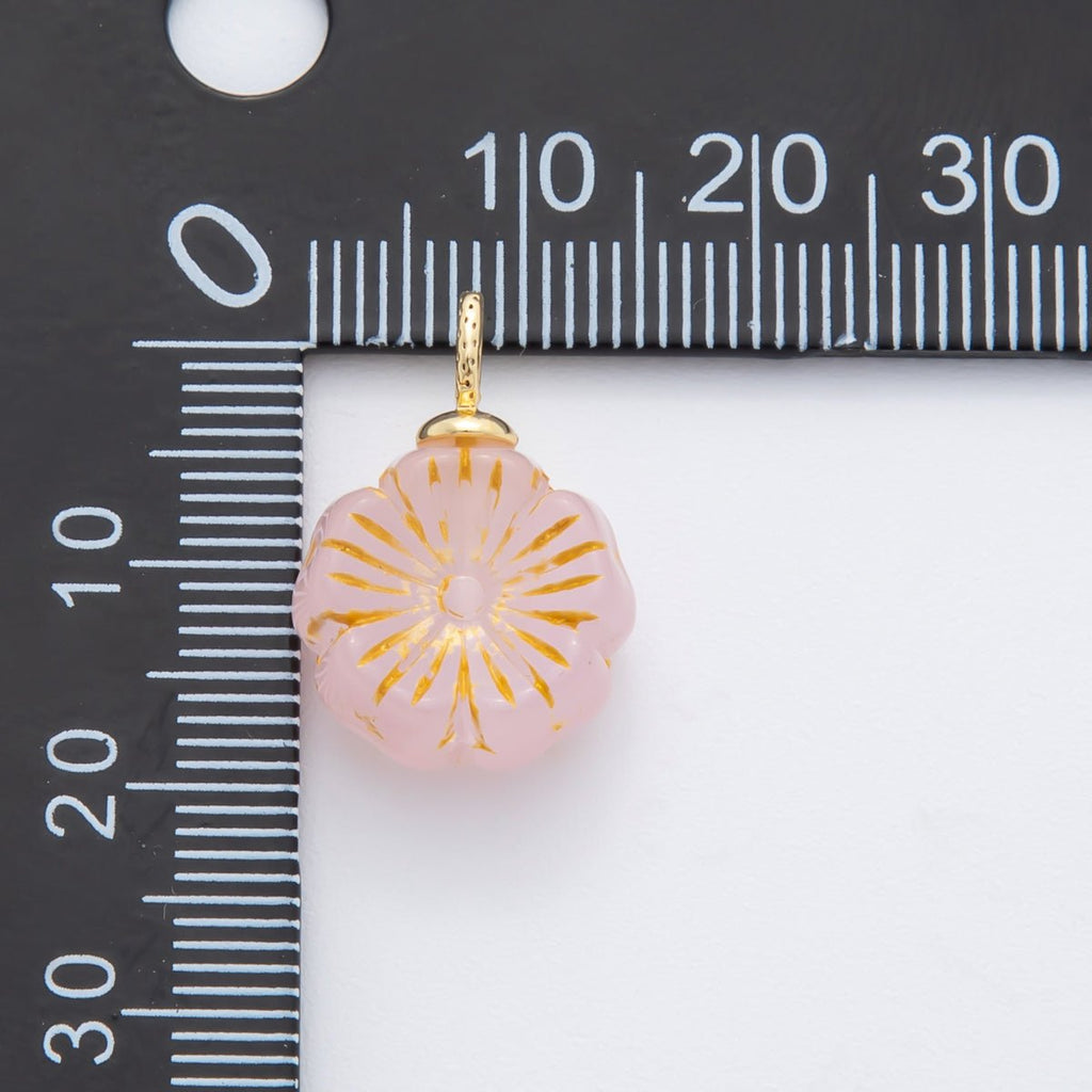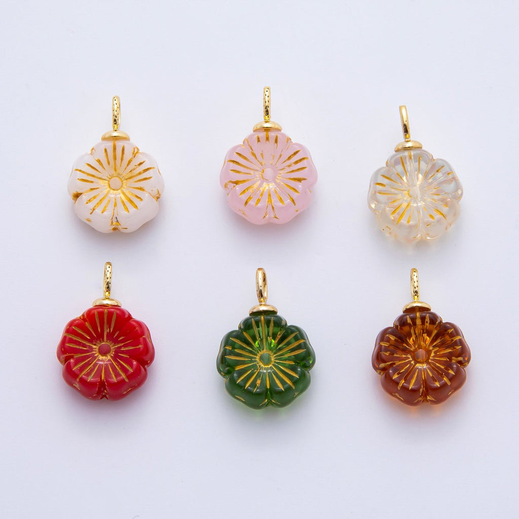 18K Gold Filled Red, Clear, Green, White, Orange, Pink Gold Lined Flower Czech Beads Drop Charm | E864 - E895
