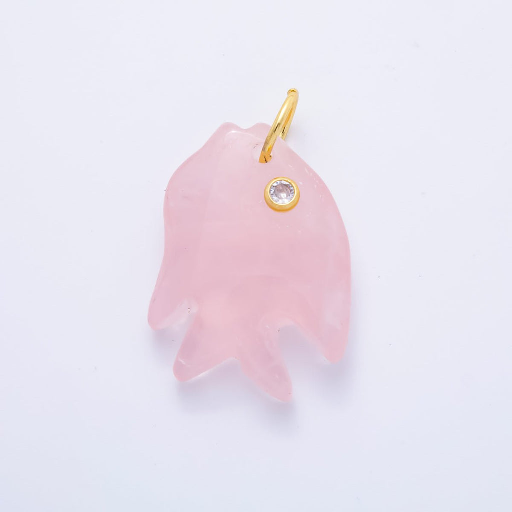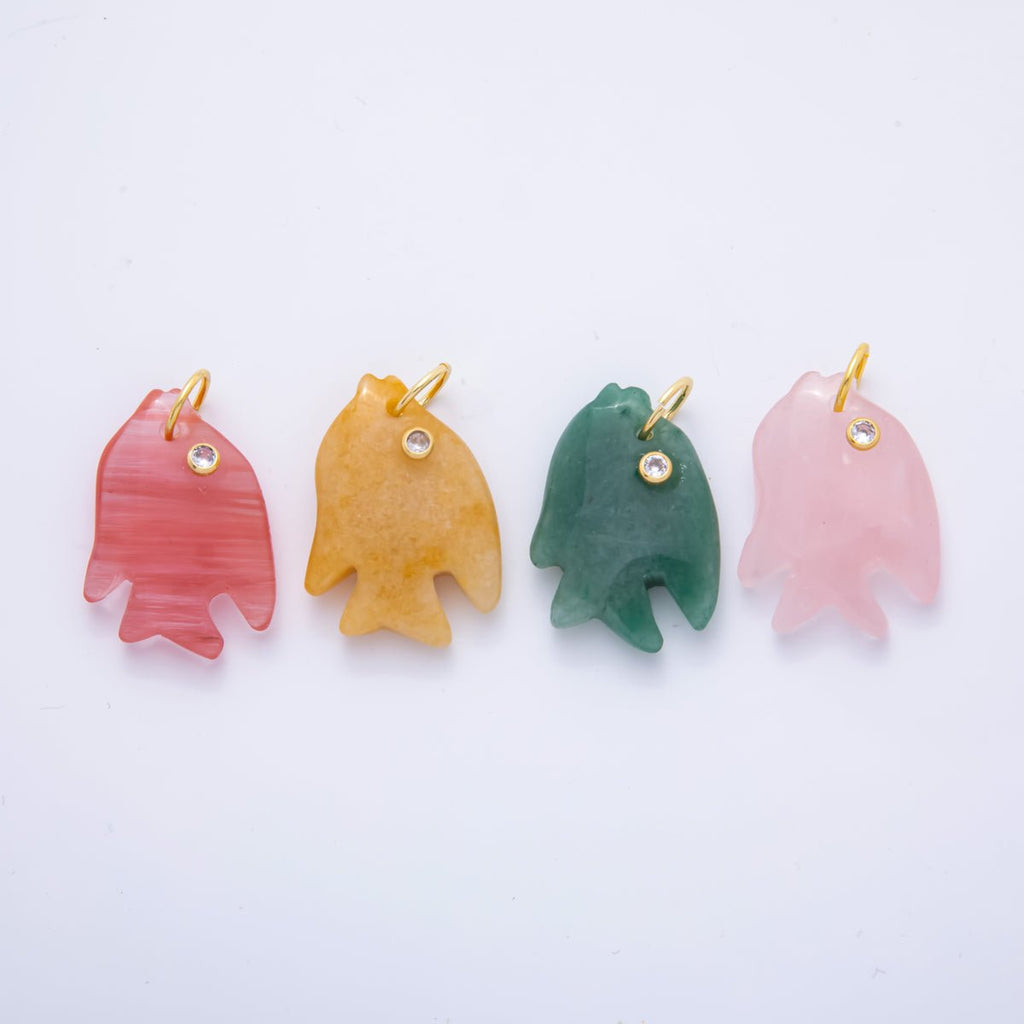 18K Gold Filled 36mm Topaz, Quartz, Aventurine Candy Bubbly Fish Gemstone Charm | AH882 AH883