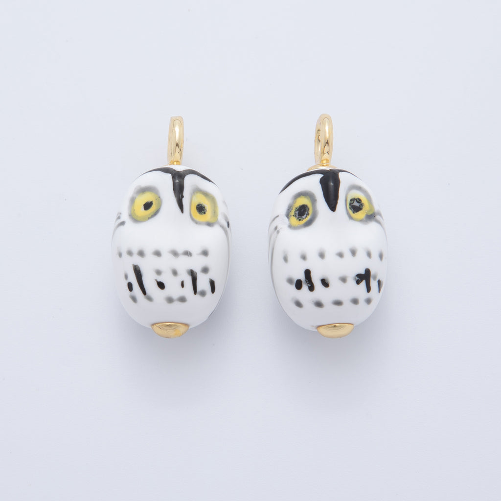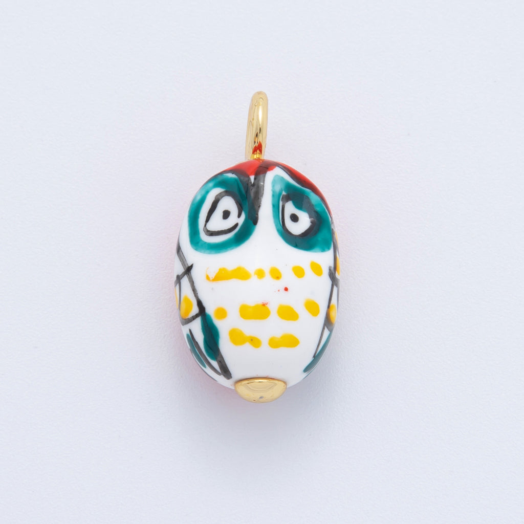 18K Gold Filled White, Red,Yellow, Blue Owl Bird Animal Ceramic Drop Pendant | AF696 AF697