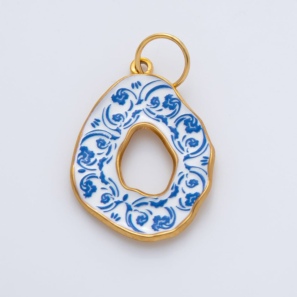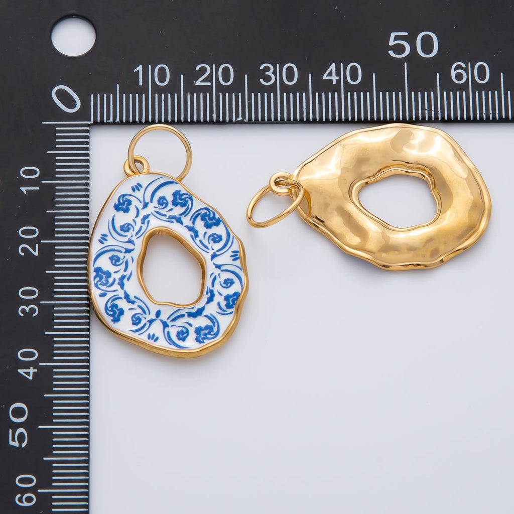 18K Gold Plated 34mm Blue Enamel Donut Floral Charm | AF1420
