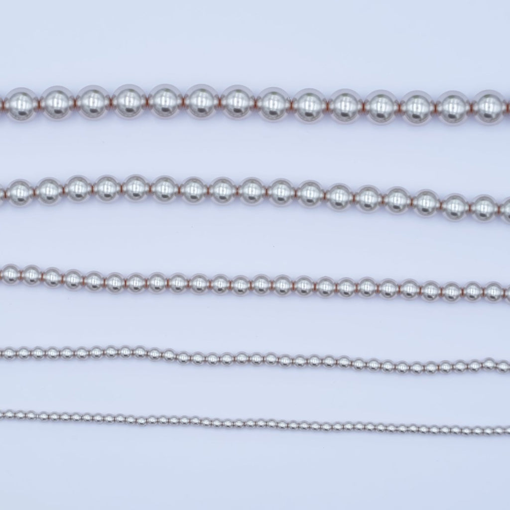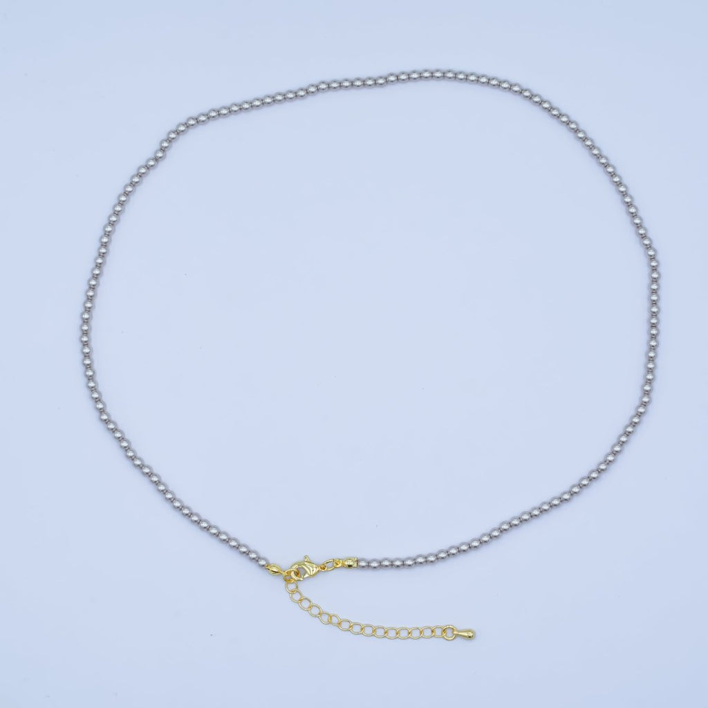 24K Gold Filled 10mm, 8mm, 6mm, 4mm, 3mm Grey Round Shell Pearl 17 Inch Necklace | WA-2826 ~ WA-2830