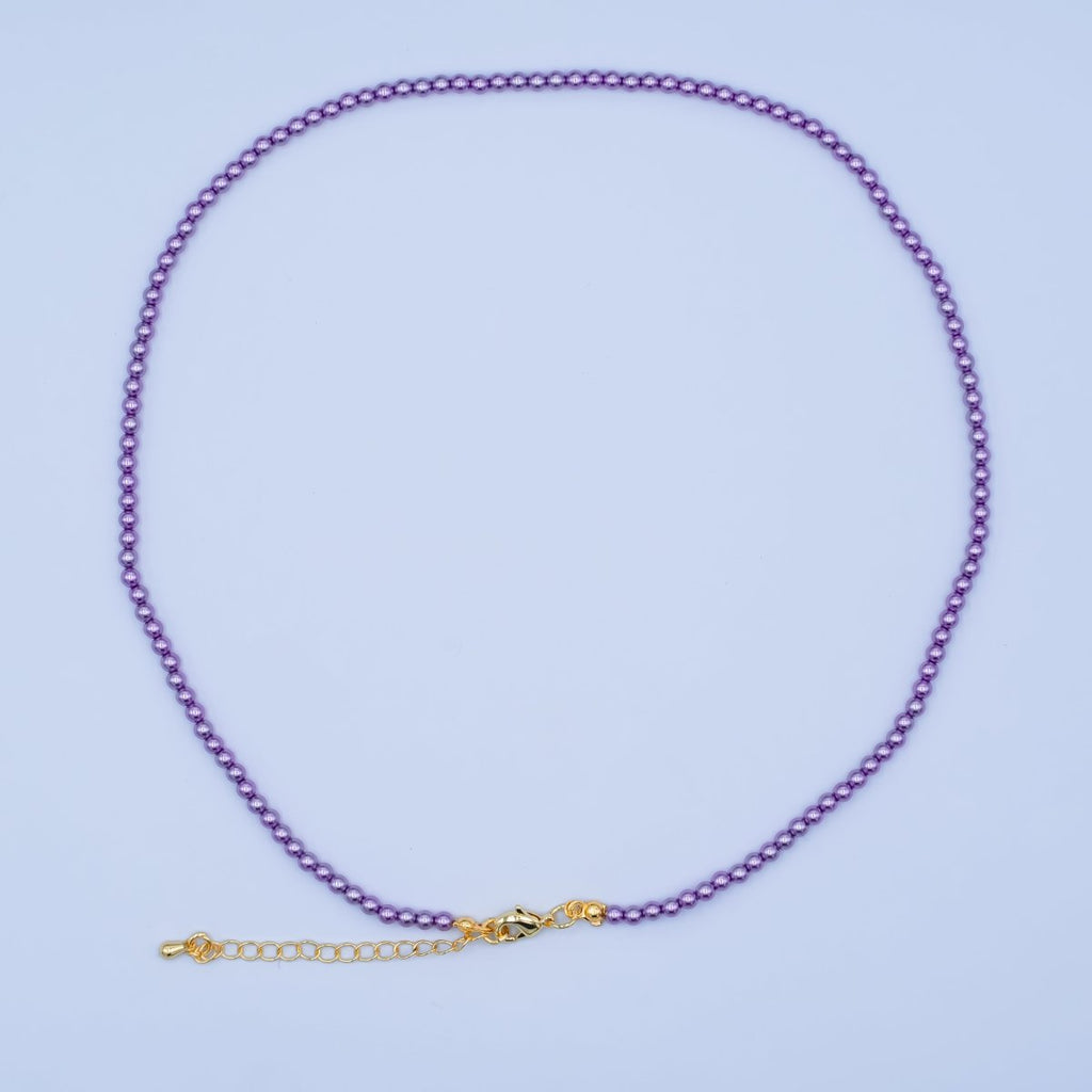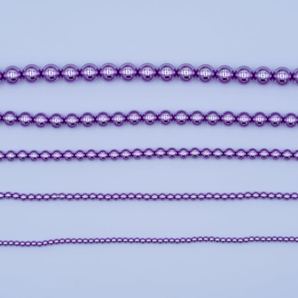 24K Gold Filled 10mm, 8mm, 6mm, 4mm, 3mm Dark Purple Round Shell Pearl 17 Inch Necklace | WA-2835 ~ WA-2831