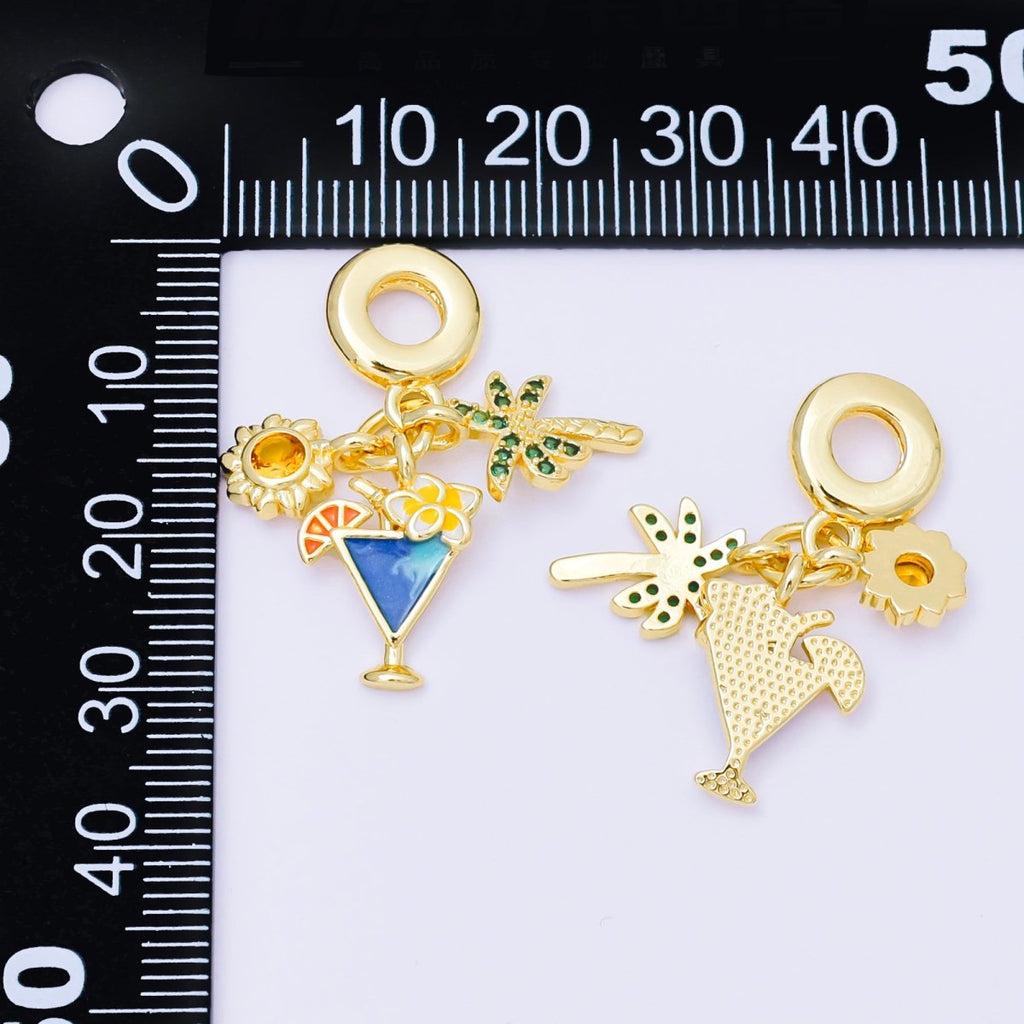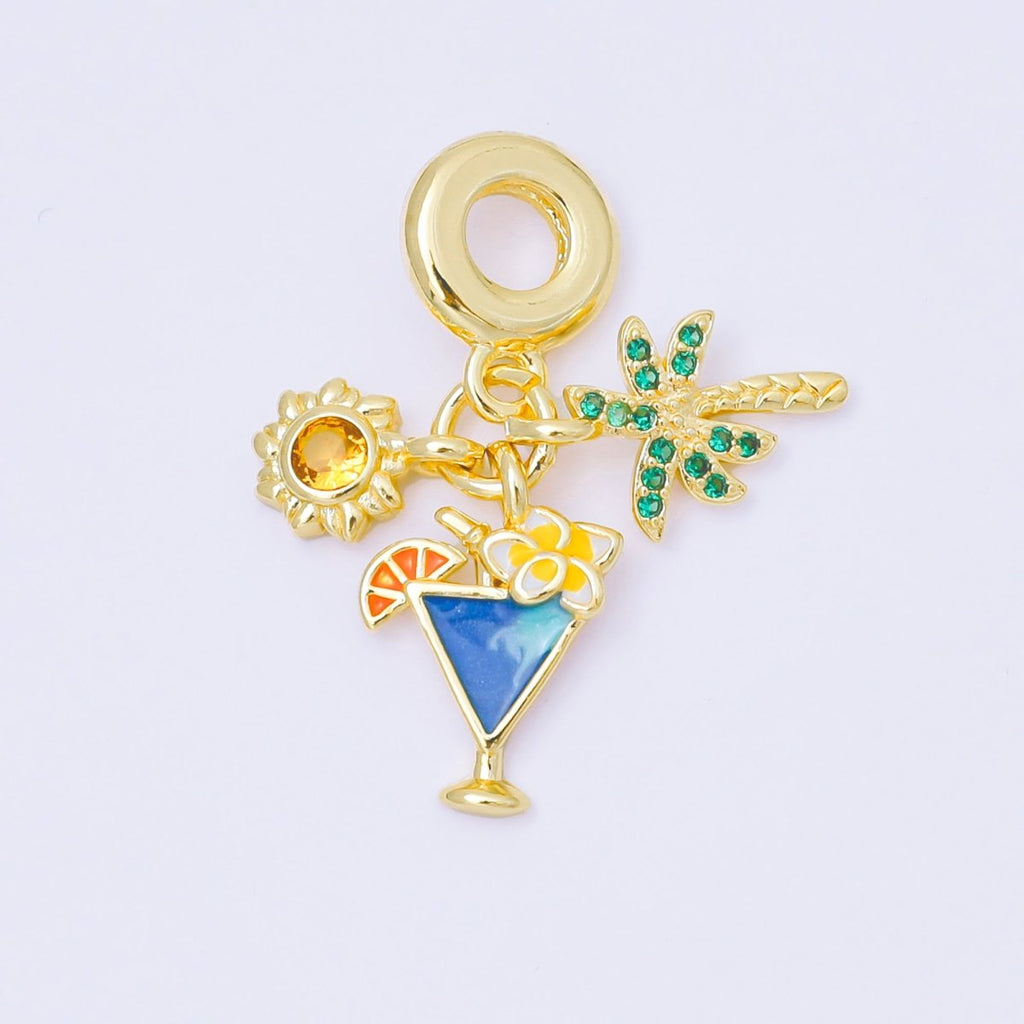 24K Gold Filled Palm Tree Martini Sun Summer Drop Rondelle Charm | AC1653