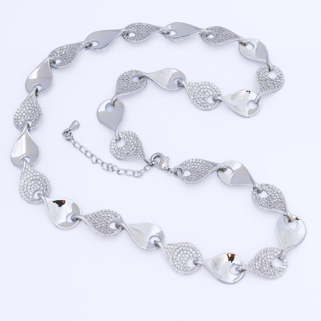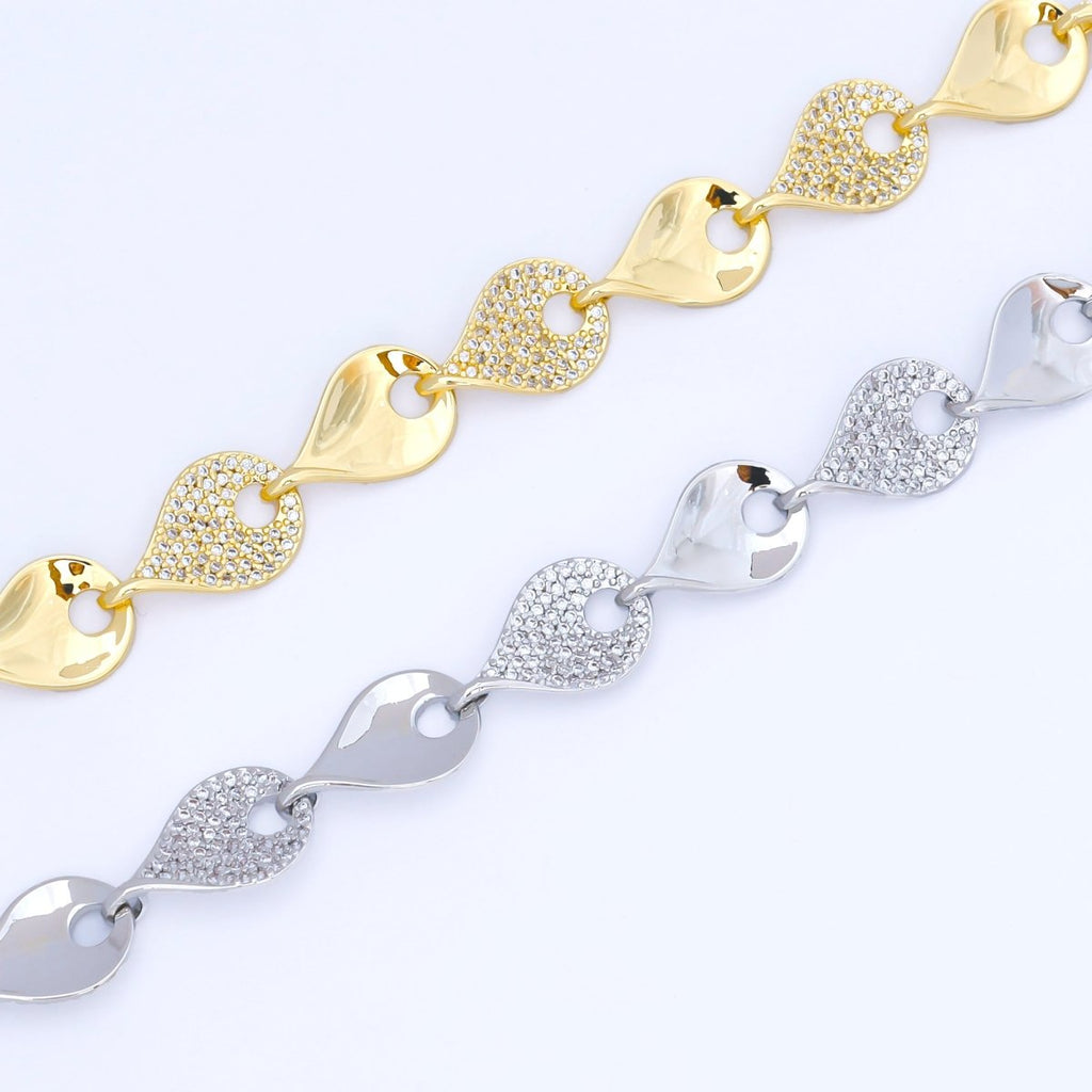 24K Gold Filled 11.1mm Micro Paved CZ Leaf Disc Charm Chain 16 Inch Necklace with Extender | WA-1294 WA-1297