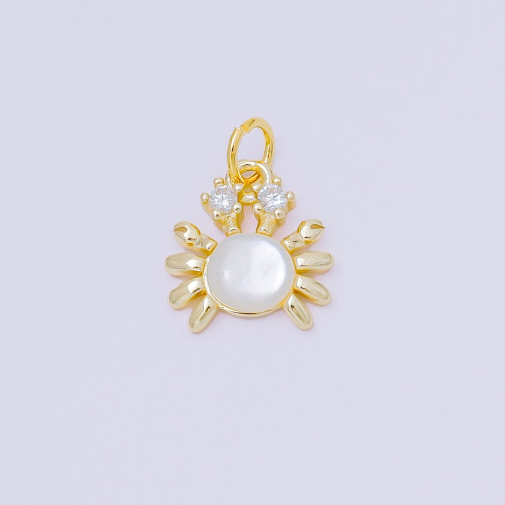 24K Gold Filled 12mm Shell Pearl CZ Crab Crustacean Sea Animal Charm | AC1589