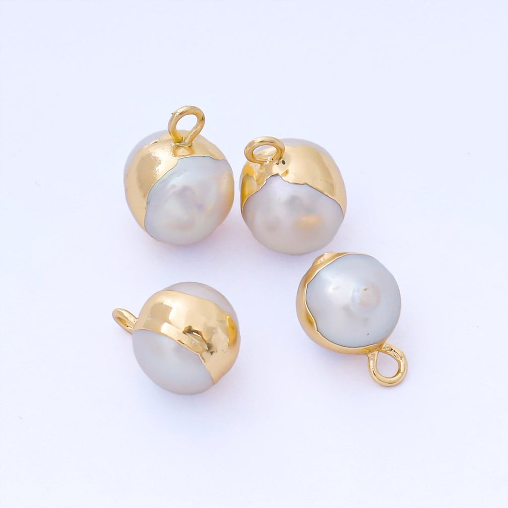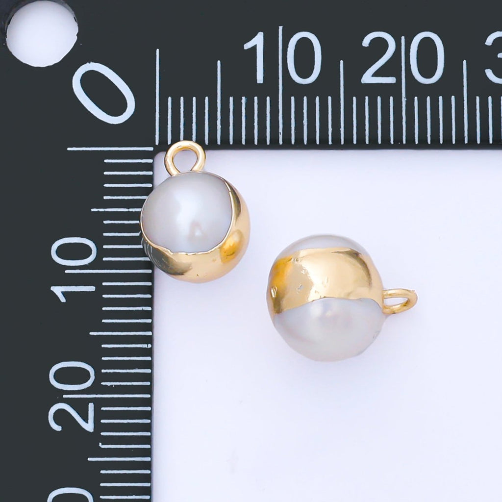 24K Gold Filled 12mm Bezel Setting Round Shell Pearl Dainty Drop Charm | AF581