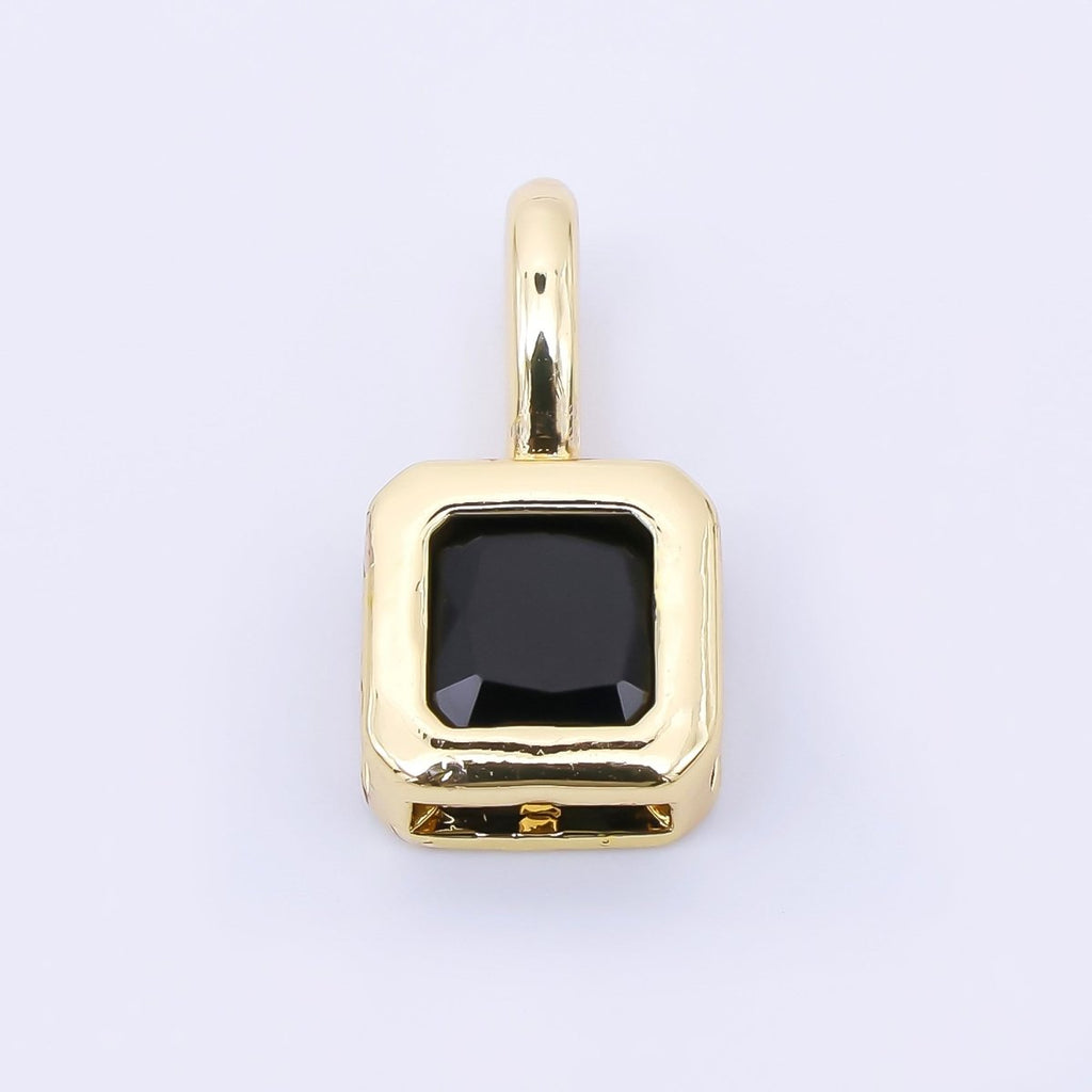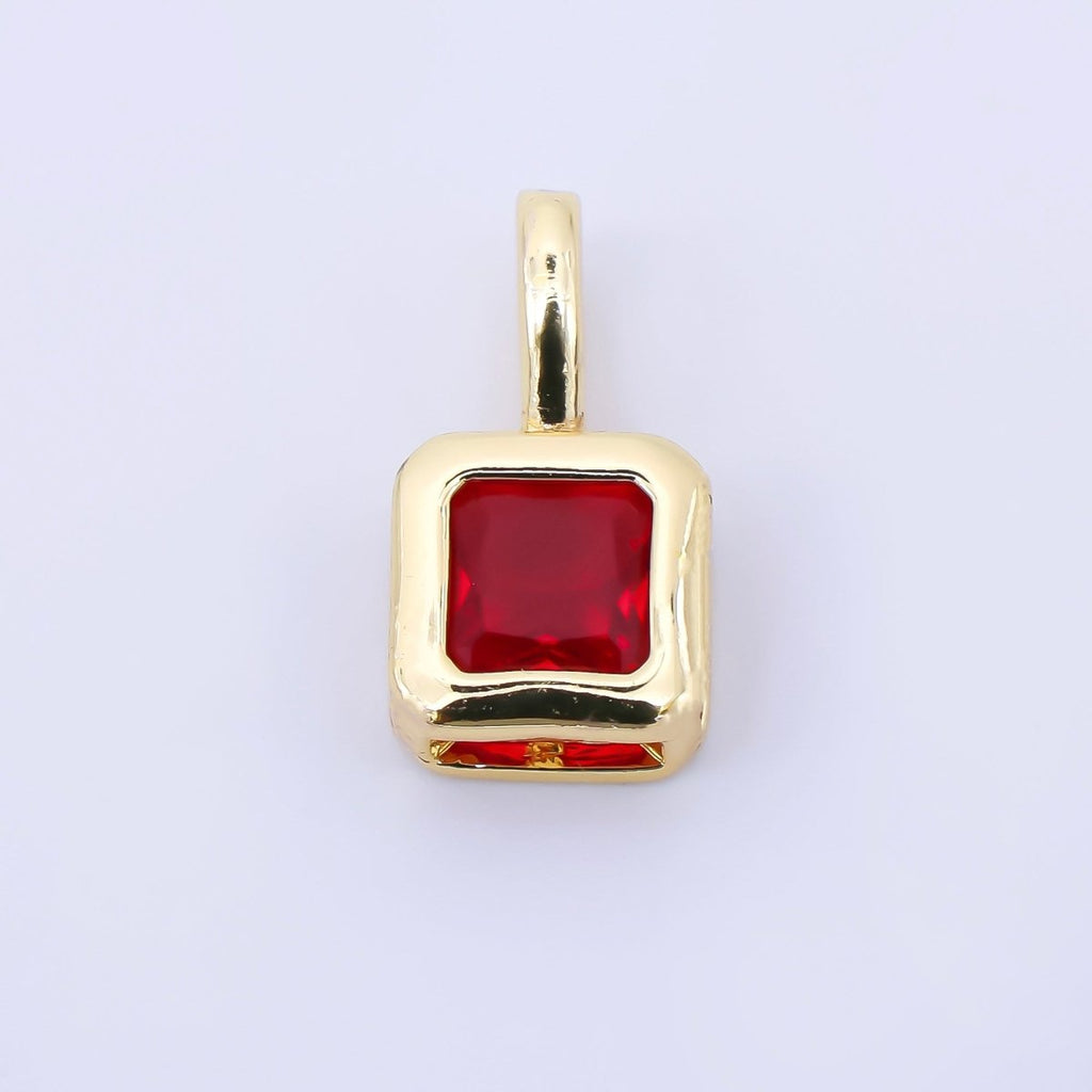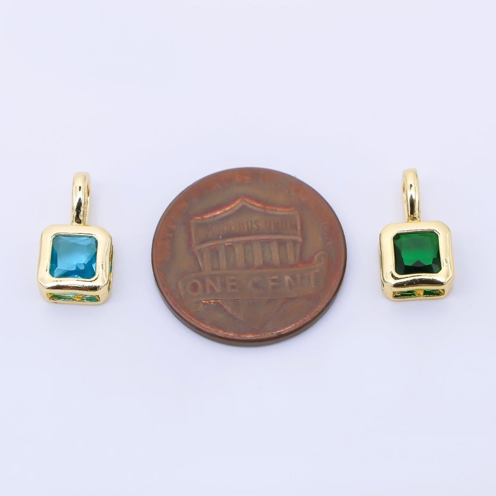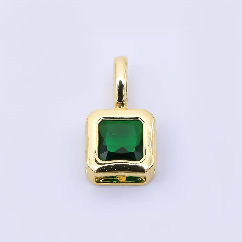 24K Gold Filled 13mm Green, Red, Black Square Baguette CZ Bezel Cut Charm | AA1630 - AA1632