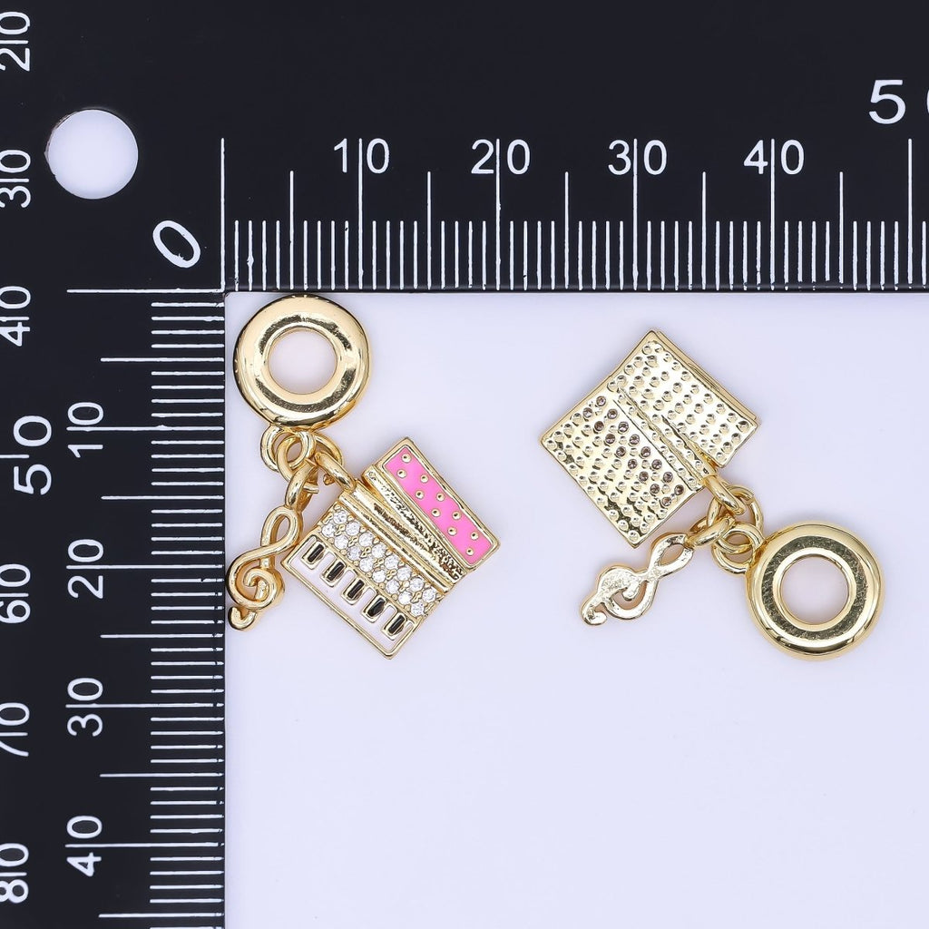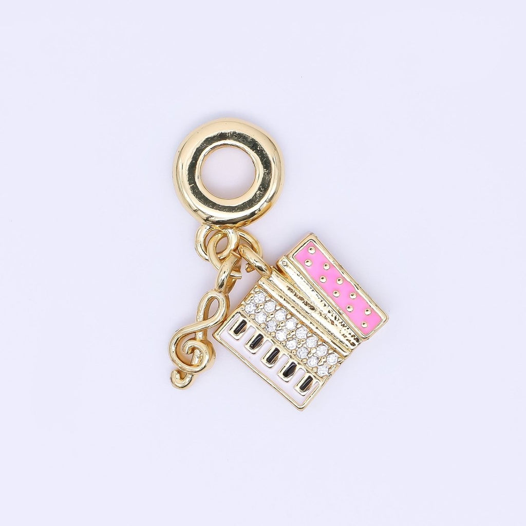 24K Gold Filled Accordion Music Instrument Micro Paved CZ Enamel Drop Charm | AC1642