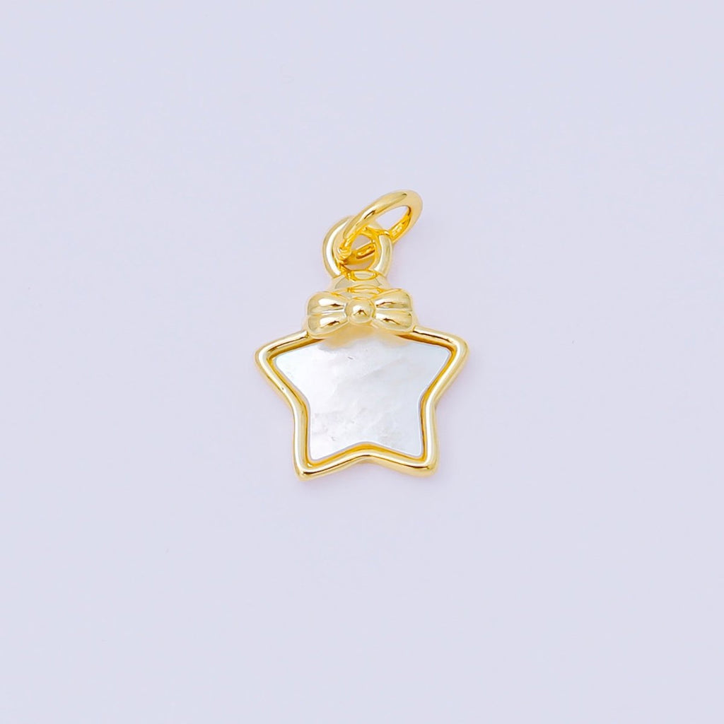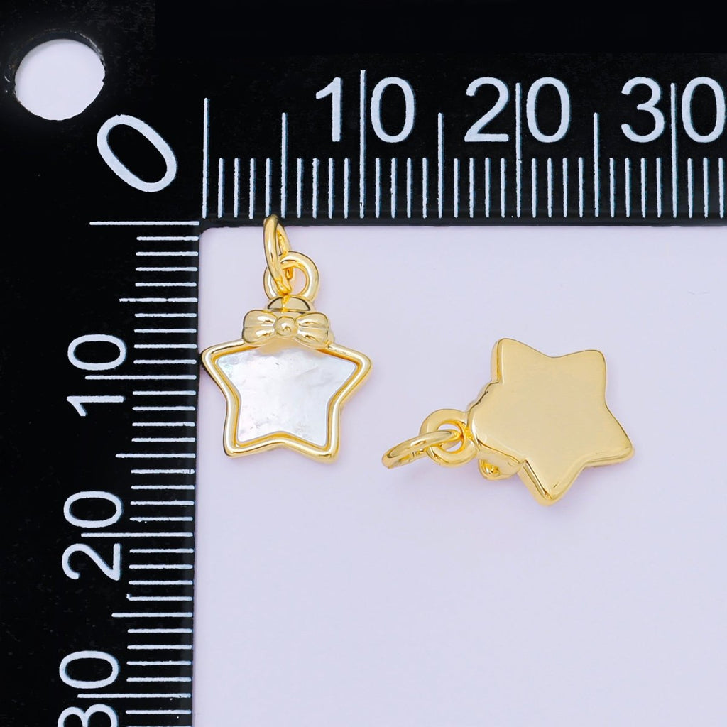 24K Gold Filled 13mm Shell Pearl Star Bow Ribbon Mini Charm | M876