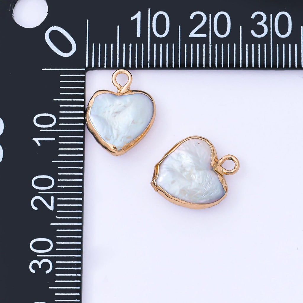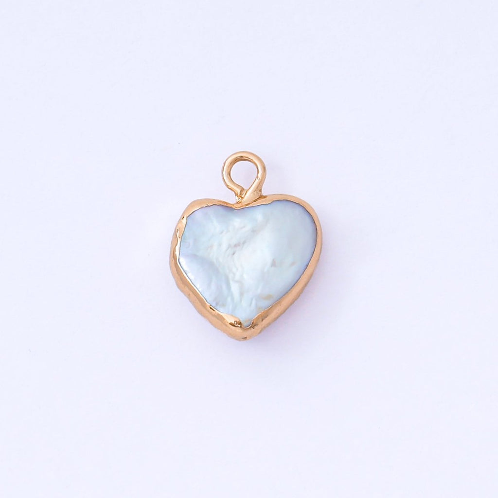Gold Plated 14mm Baroque White Freshwater Pearl Dainty Heart Drop Charm | AF573