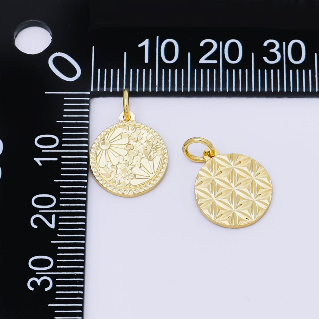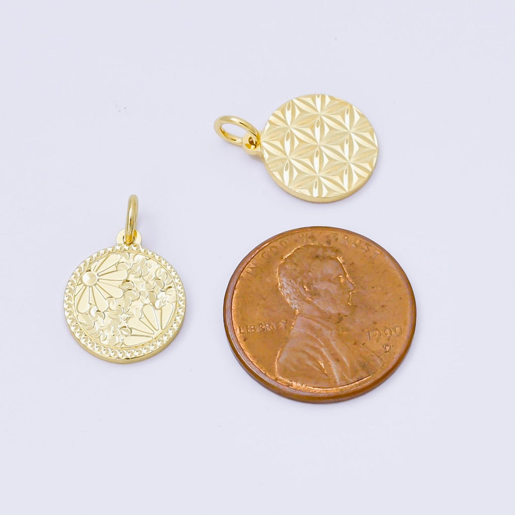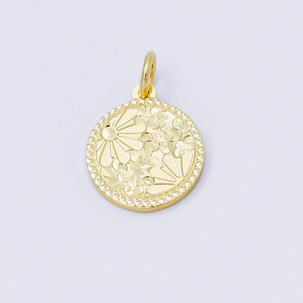 24K Gold Filled 14mm Floral Medallion Coin Charm | AF1249