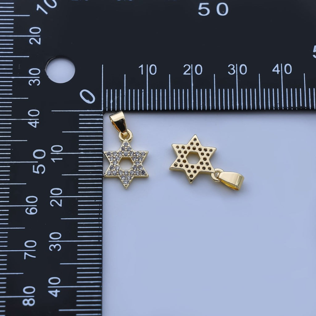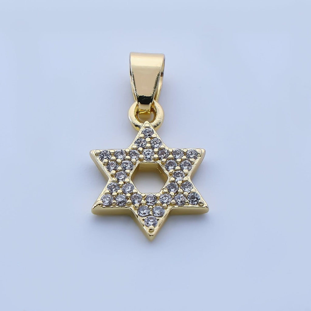 24K Gold Filled 14mm Micro Paved CZ Celestial Six-Point Star of David Pendant | AH-522