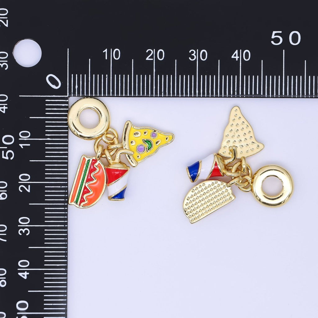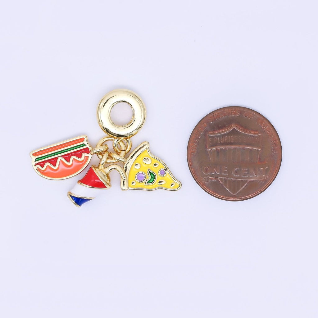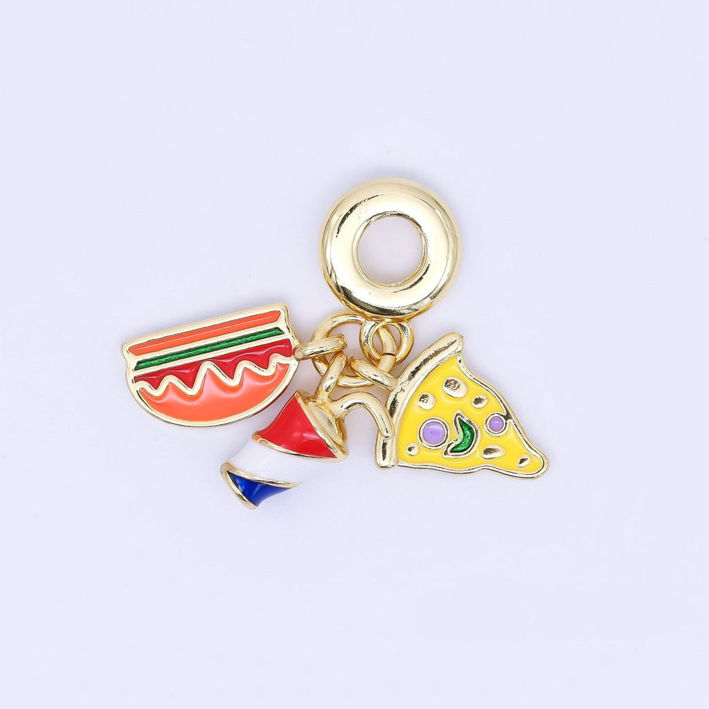 24K Gold Filled Fast Food Pizza Soda Burger Enamel Drop Rondelle Charm | AC1638