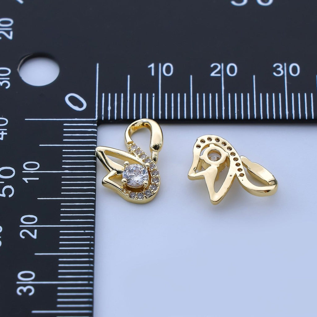 24K Gold Filled 15mm Micro Paved CZ Bird of Beauty Swan Animal Pendant | AH-524