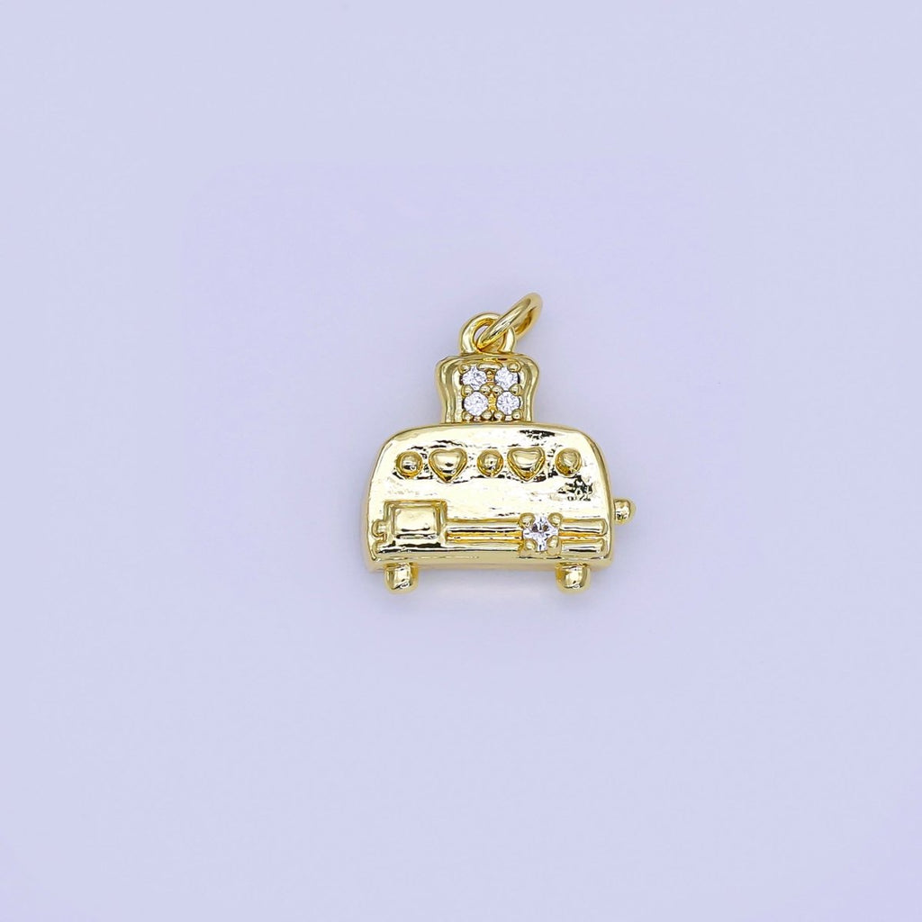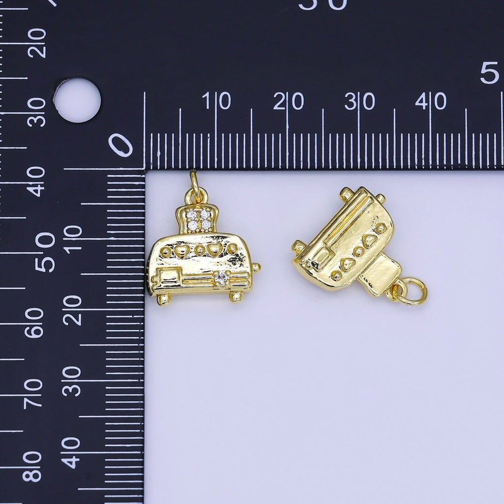 24K Gold Filled 16.5mm Micro Paved CZ Bread Toaster Charm | AJ321