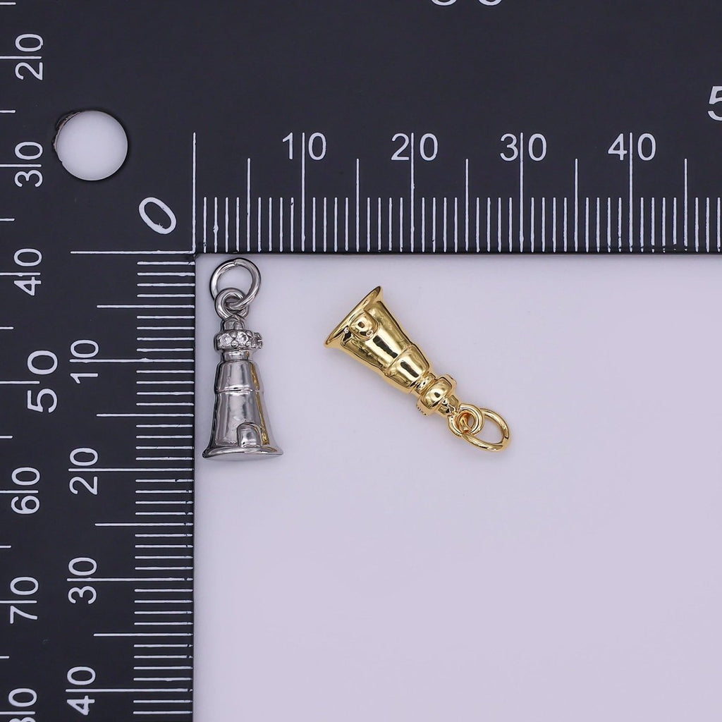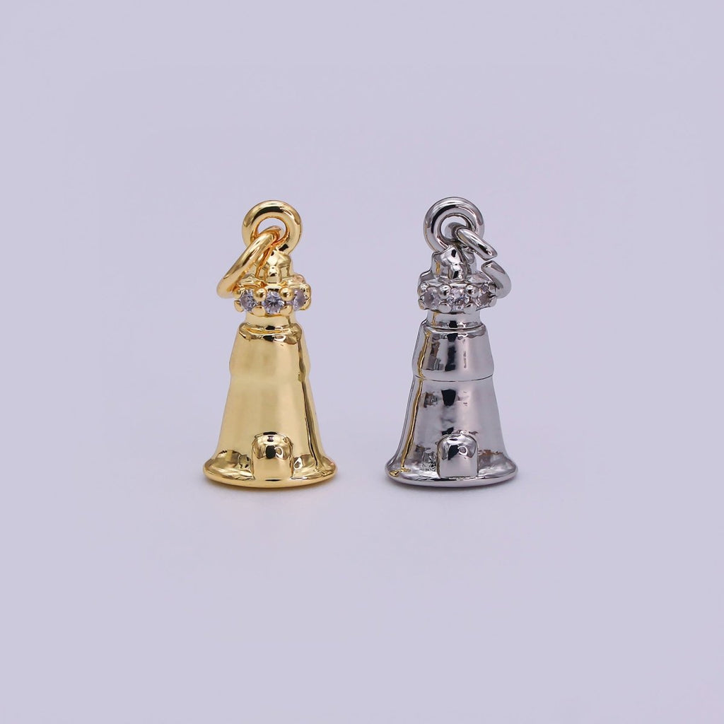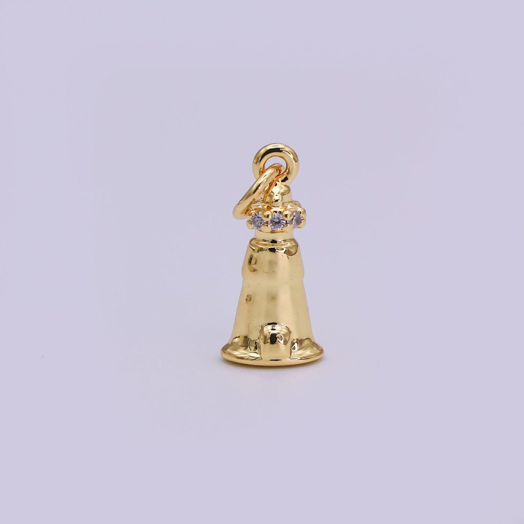 24K Gold Filled 16mm Round CZ Jingle Bell Holiday Charm in Gold & Silver | AJ-349