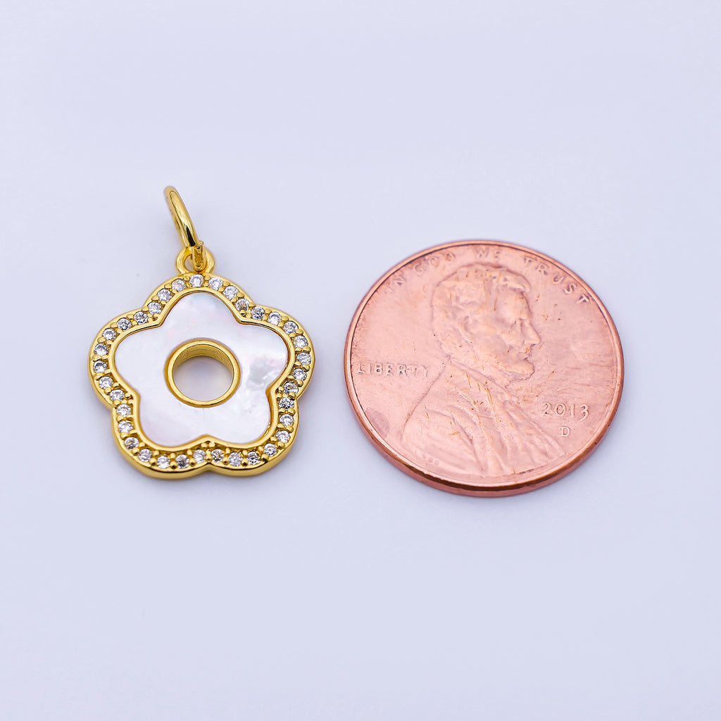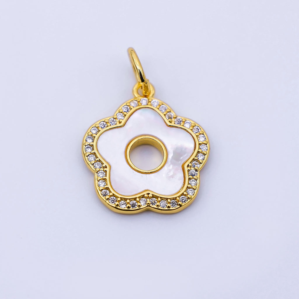 24K Gold Filled 17mm Open Shell Pearl Micro Paved CZ Flower Charm | C972