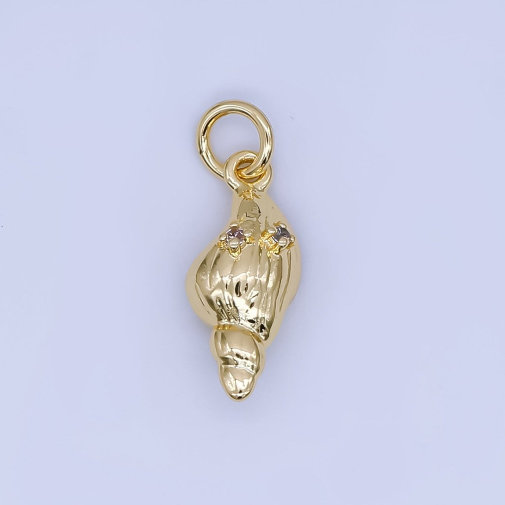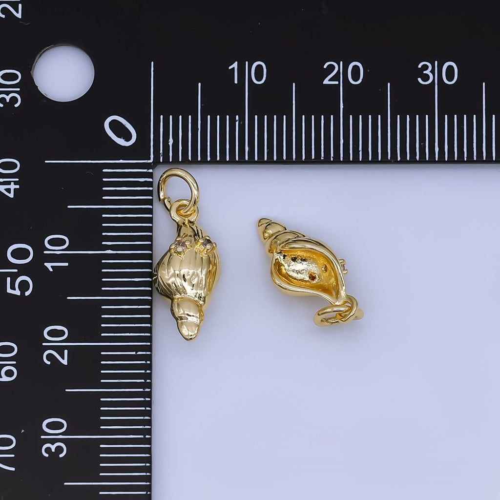 24K Gold Filled 17mm Clear CZ Nautical Clam Sea Shell Multidimensional 3D Charm | A1612