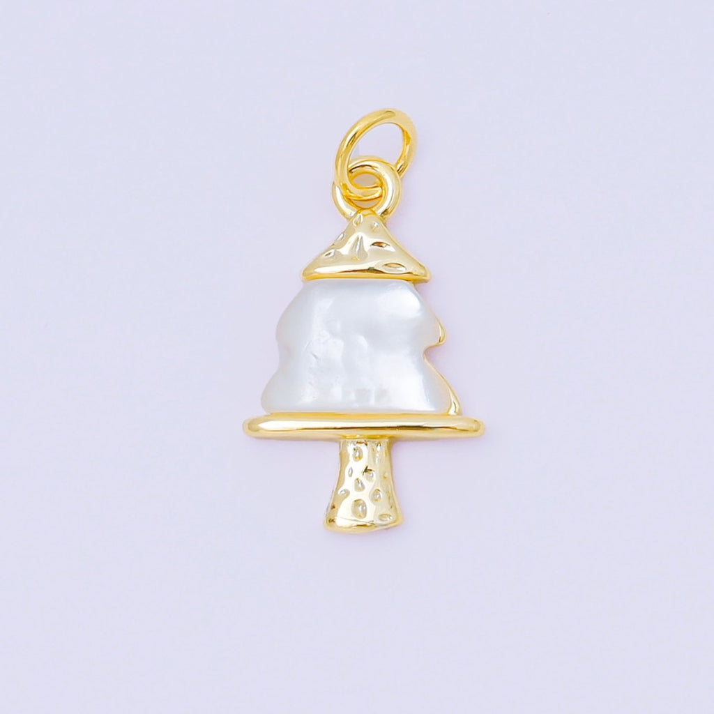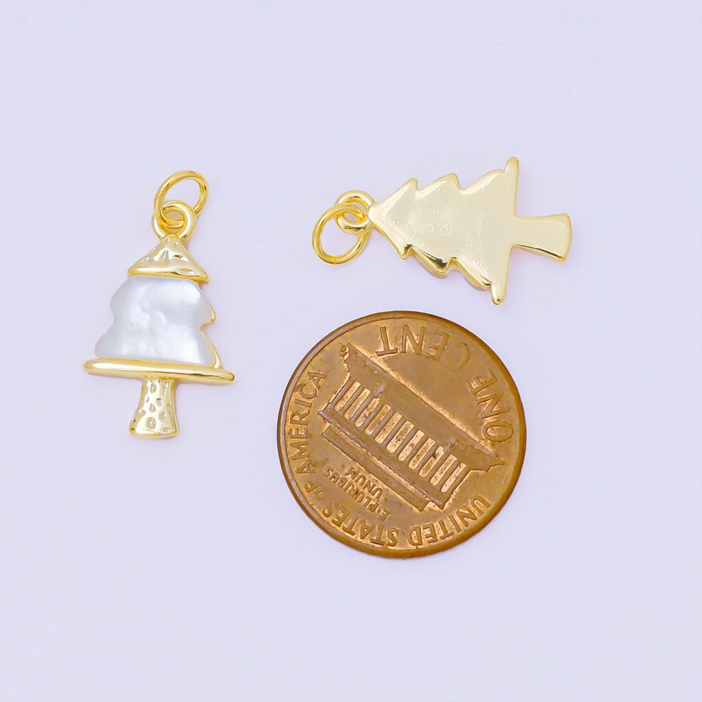 24K Gold Filled 18.5mm Shell Pearl Holidays Christmas Tree Charm | M891
