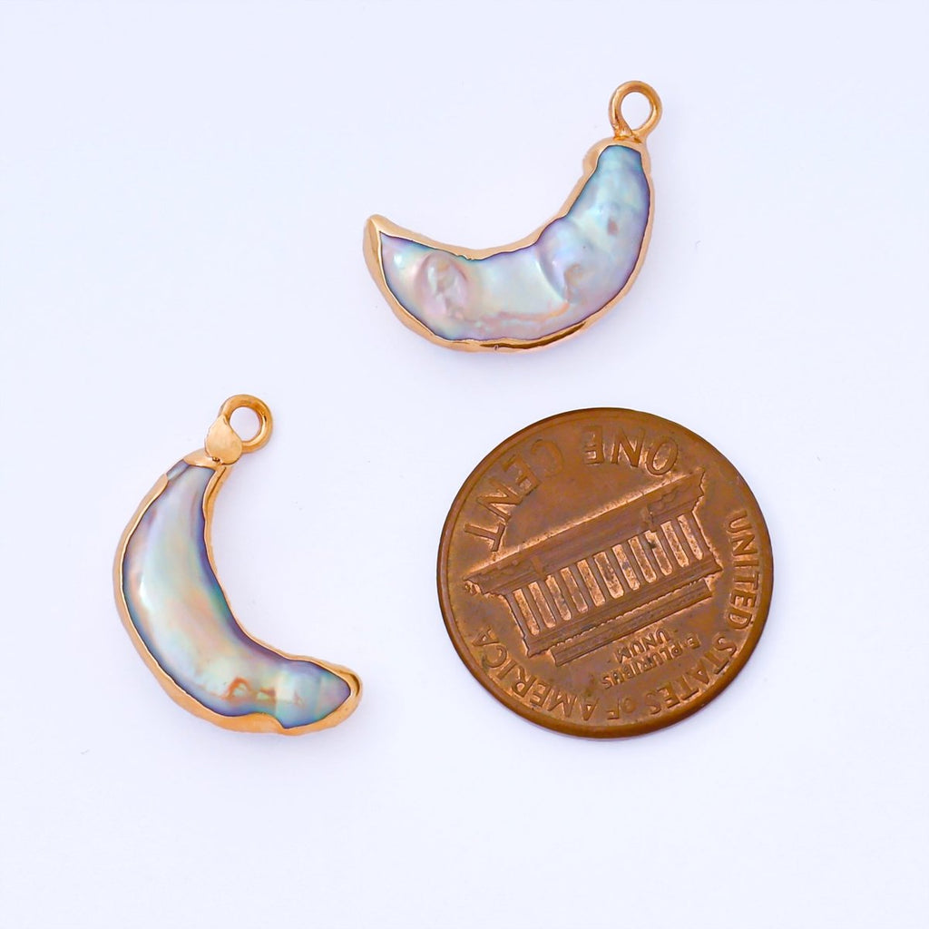 Gold Plated 19mm Baroque Freshwater Pearl Crescent Moon Drop Charm | AF575