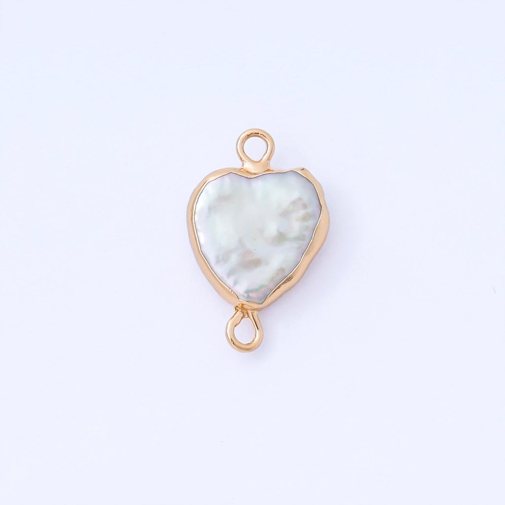 Gold Plated 19mm Baroque Freshwater Pearl Dainty Heart Charm Connector | AF577