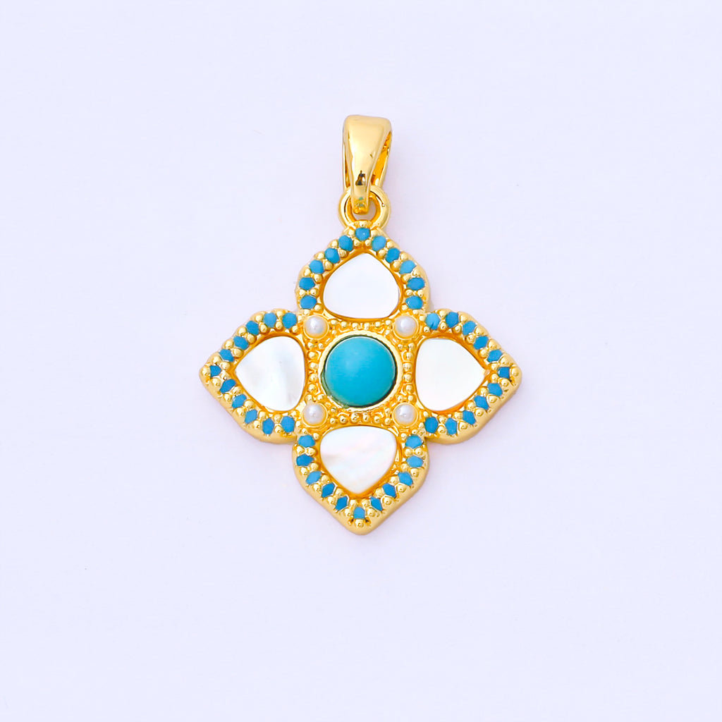24K Gold Filled 20.5mm Blue Micro Paved CZ Mother of Pearl 4-Leaf Lucky Clover Charm | AA1650