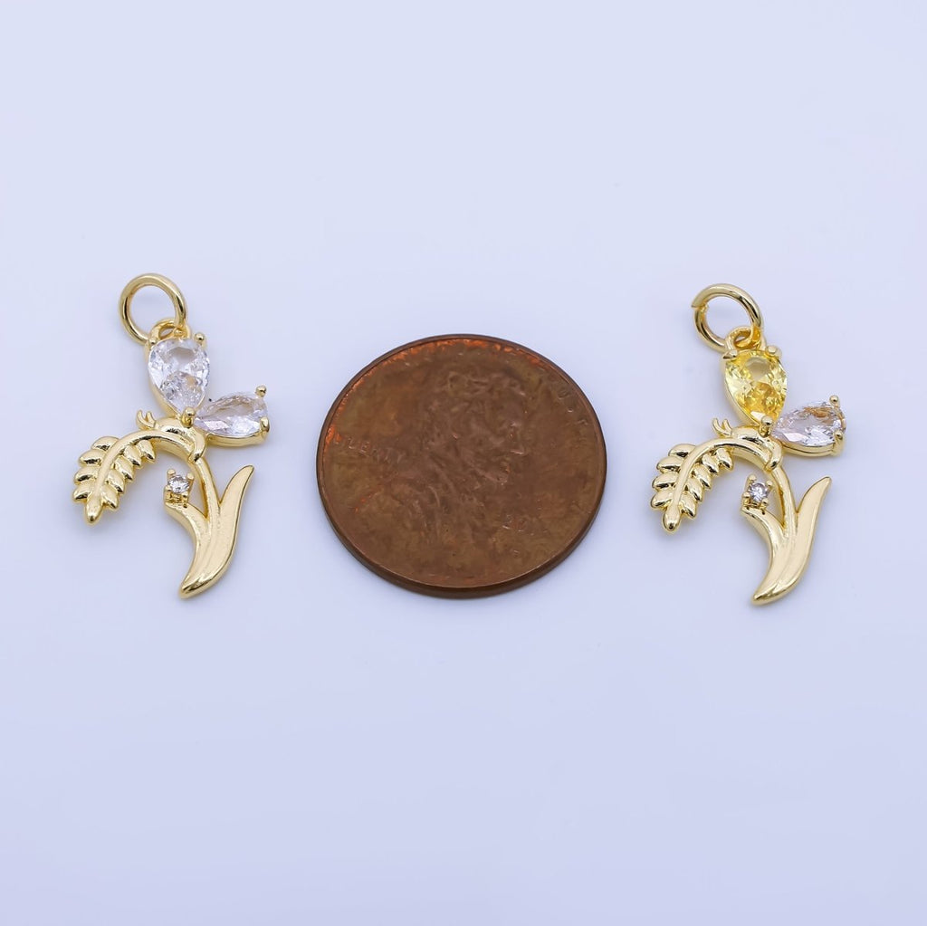 24K Gold Filled 20mm Yellow Oval CZ Tulip Flower Charm | AF1289