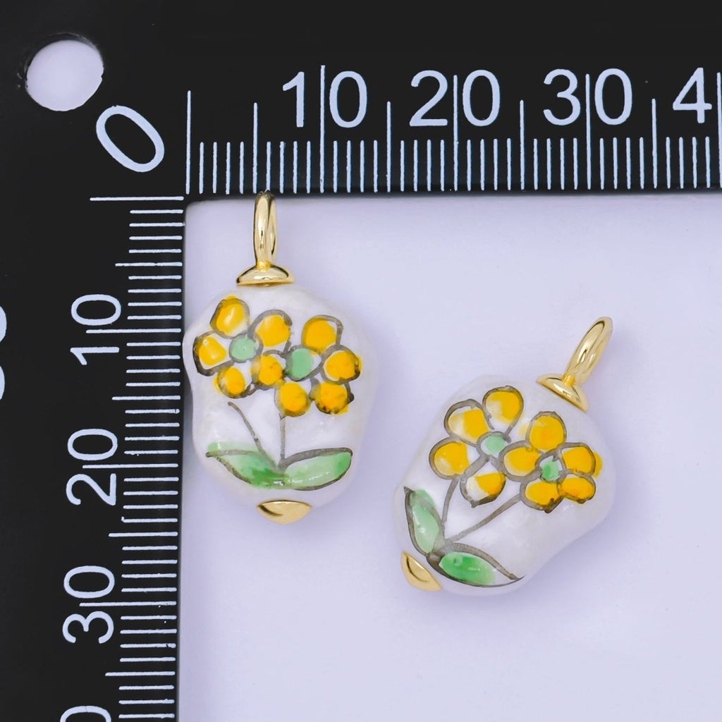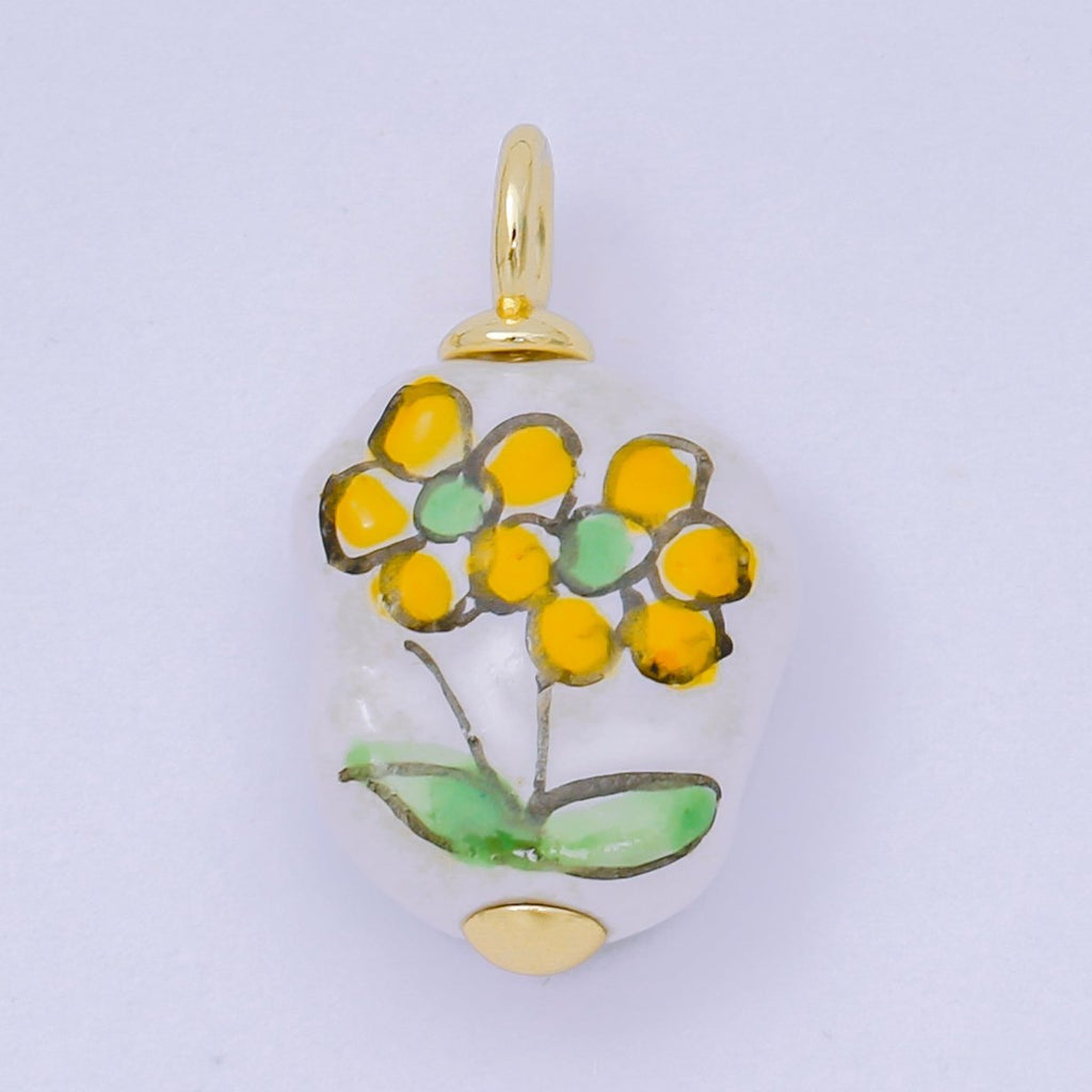 24K Gold Filled Yellow Daisy Flower Handmade Painted Baroque Freshwater Pearl Charm | AF1278