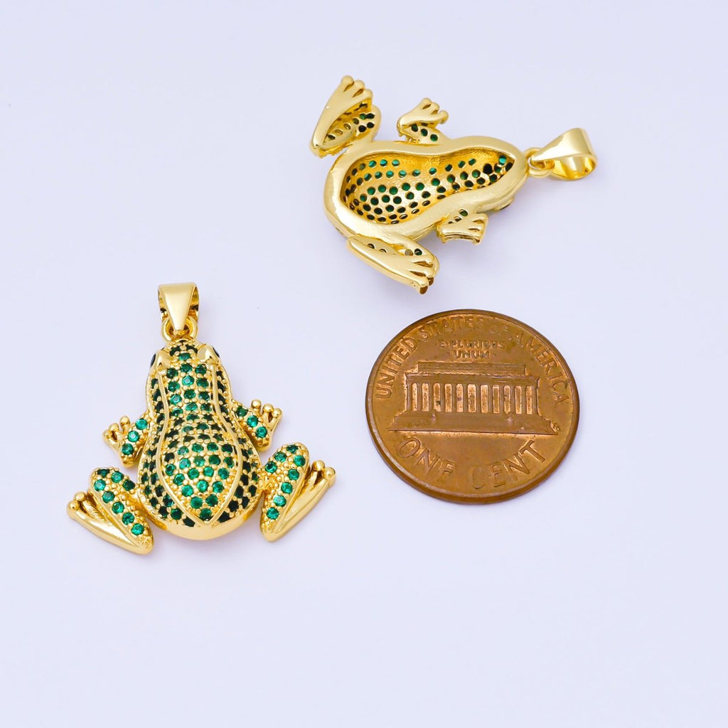 24K Gold Filled 22mm Green Micro Paved CZ Toad Frog Animals Pendant | AA1623