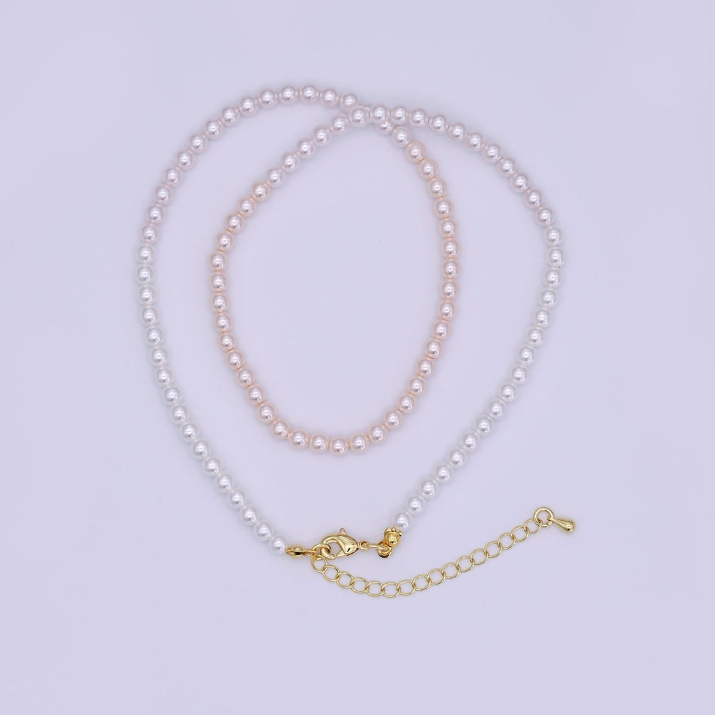 24K Gold Filled 4mm, 6mm Gradient Pink-White Shell Pearl 17 Inch Necklace | WA-2836 WA-2837