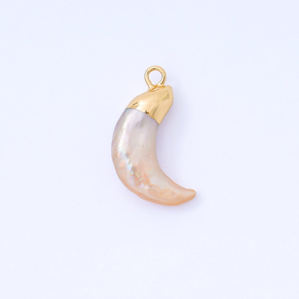 Gold Plated 20.5mm Baroque White Freshwater Pearl Crescent Moon C-Shaped Drop Charm | AF576