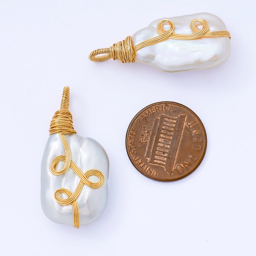 24K Gold Filled 32mm Baroque White Freshwater Pearl Drop Pendant | AF579