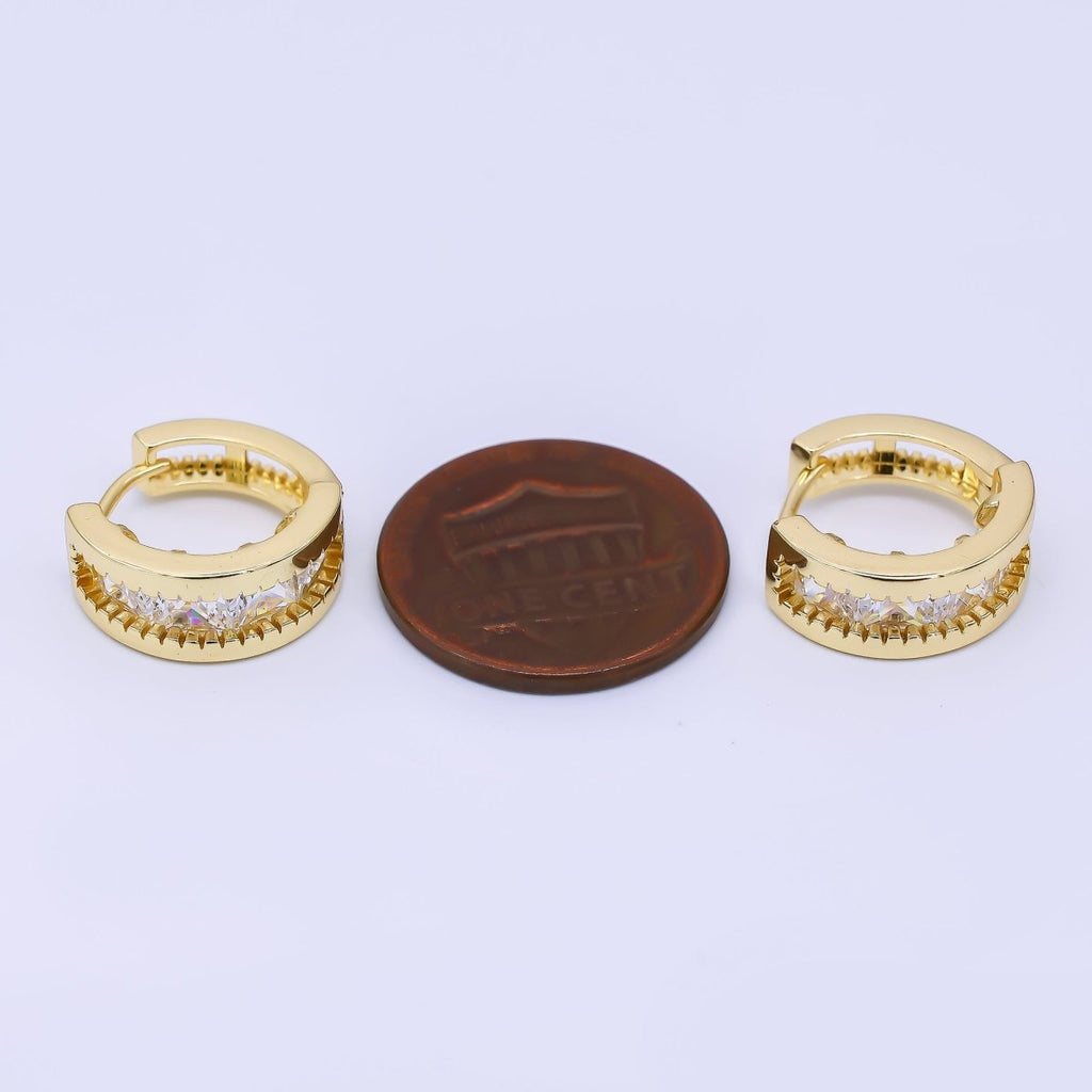 24K Gold Filled Clear CZ Modern Lever back Huggie Earrings | AJ-055