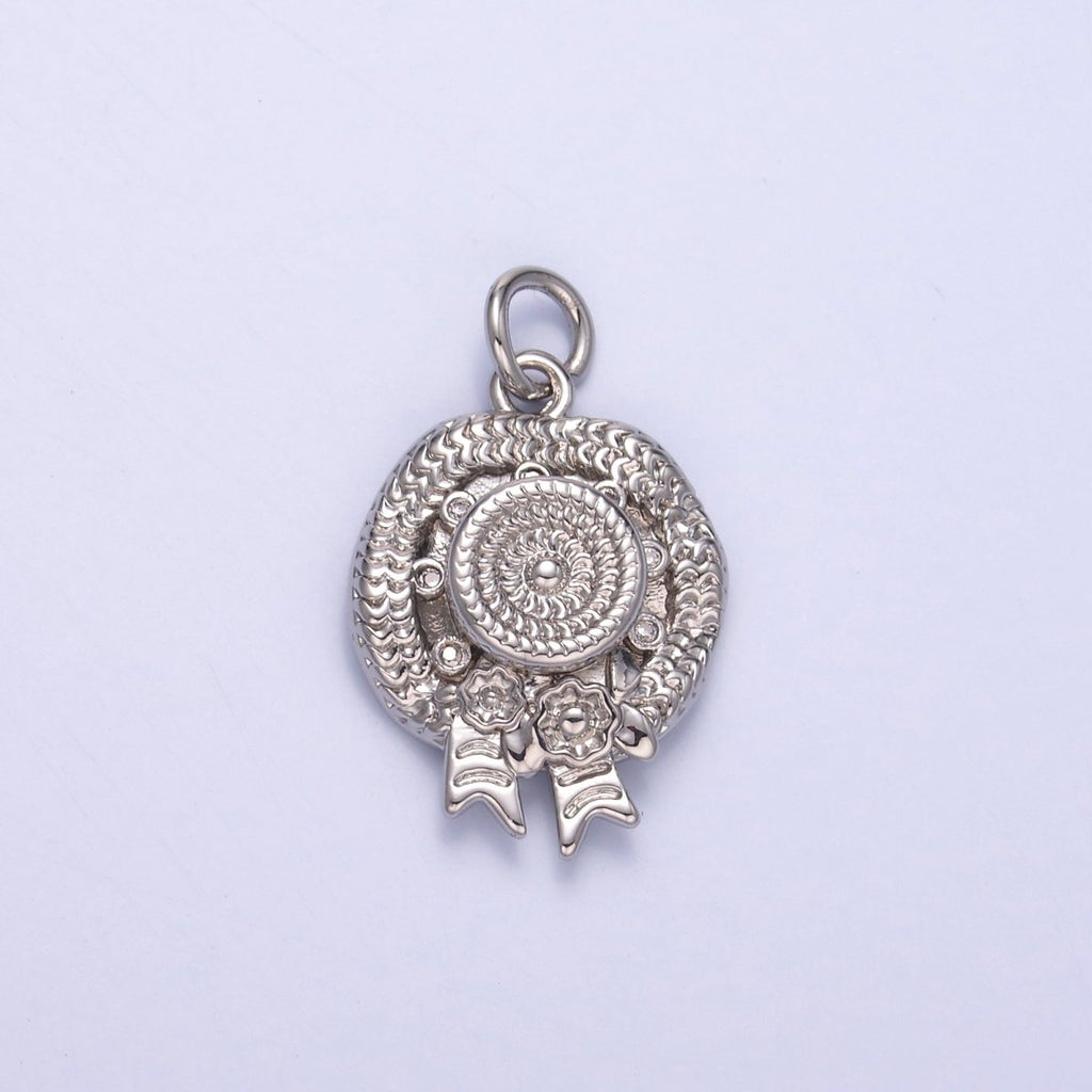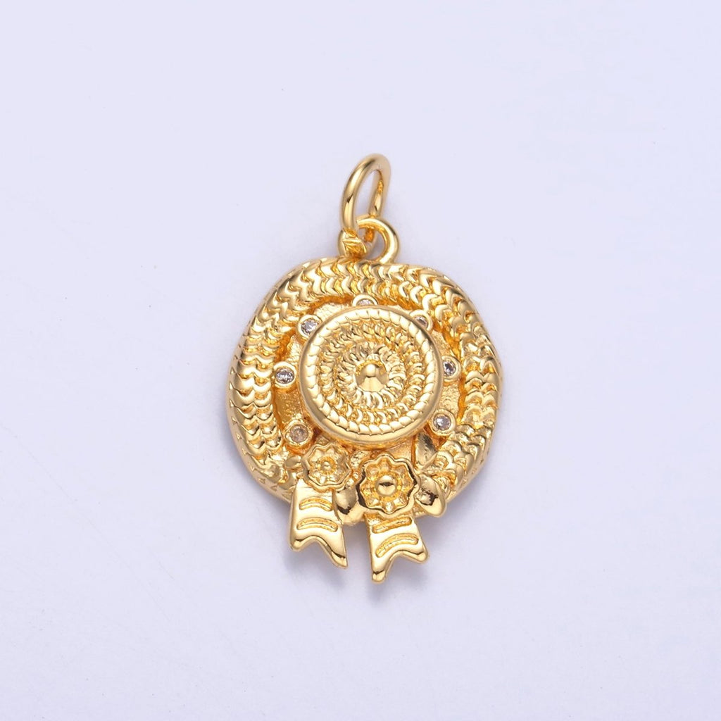 24K Gold Filled Clear CZ Flower Woven Beach Hat Charm in Gold & Silver | N015
