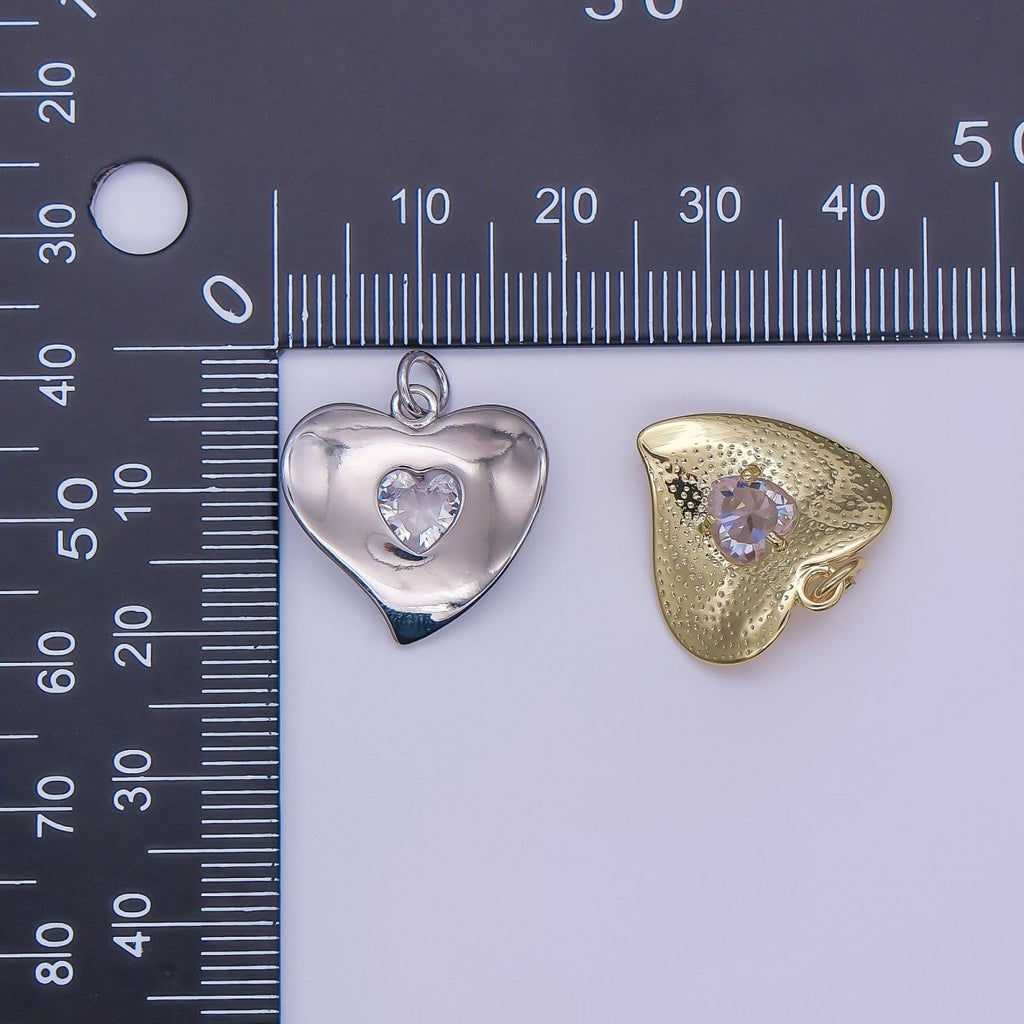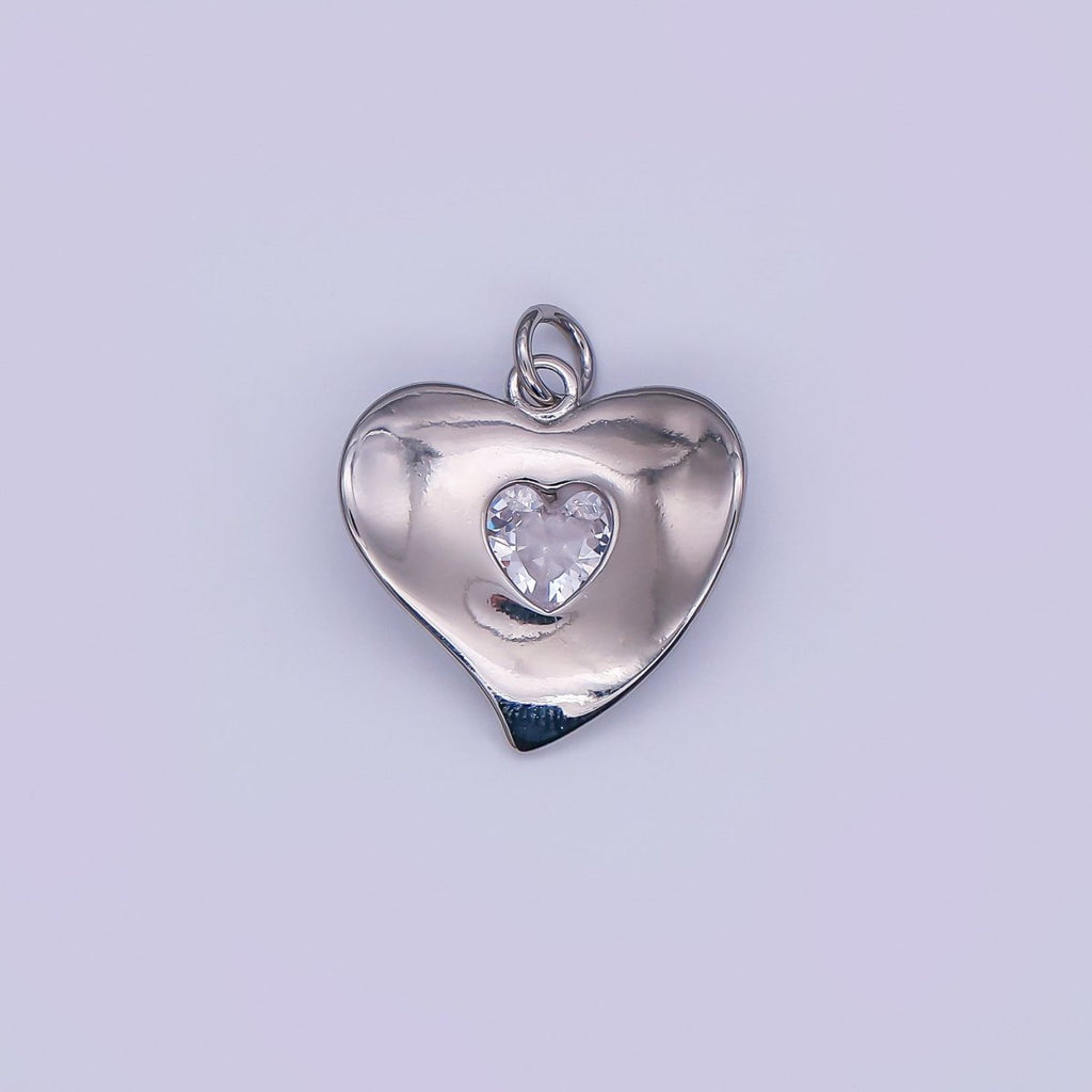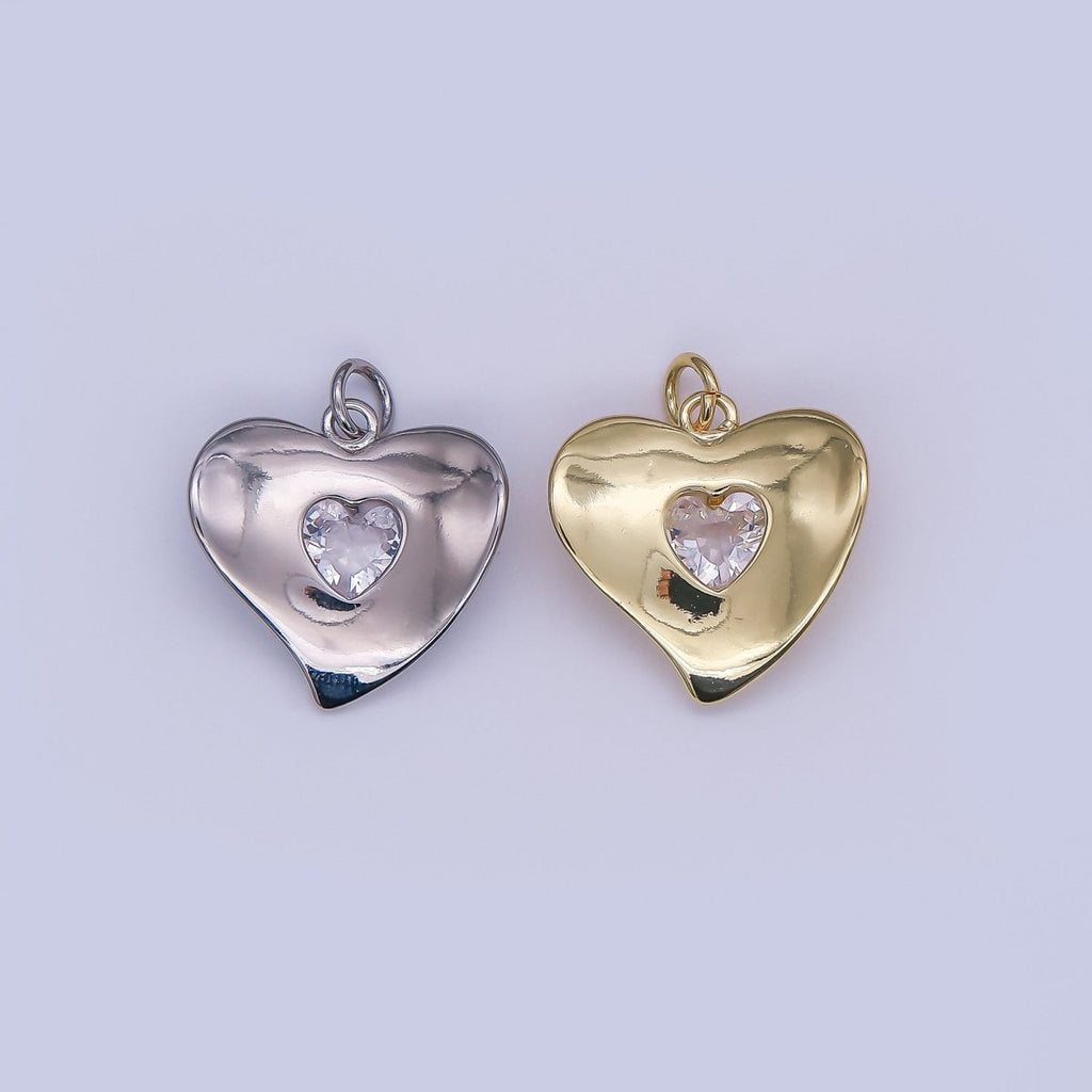 24K Gold Filled Clear CZ Heart Charm in Gold & Silver | M022