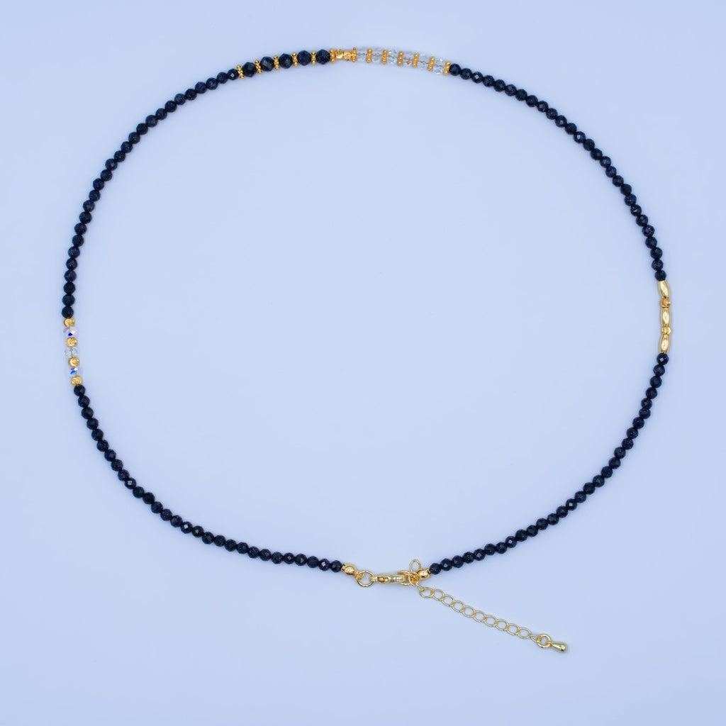 24K Gold Filled Bead Glitter Onyx Multifaceted Crystal Gemstone 18 Inch Necklace | WA-2876