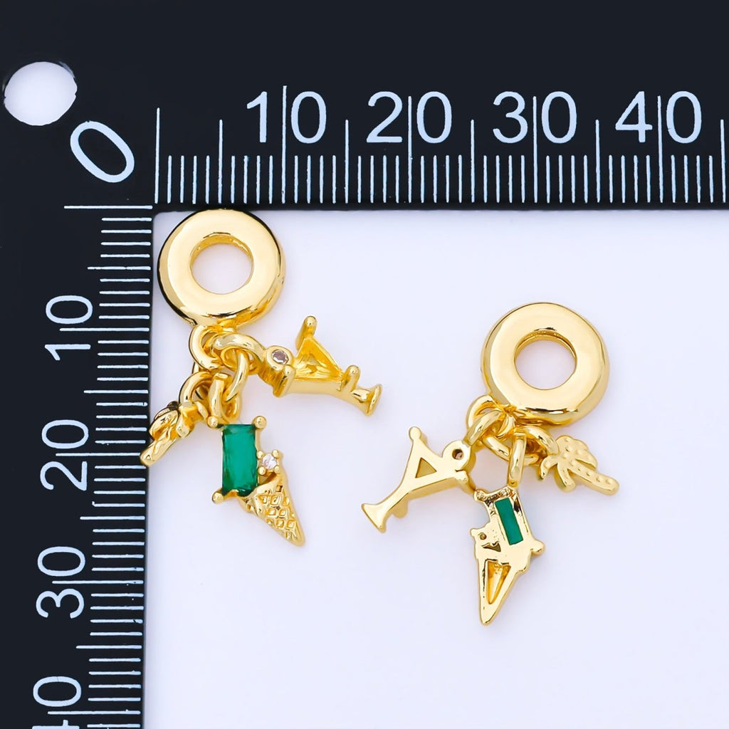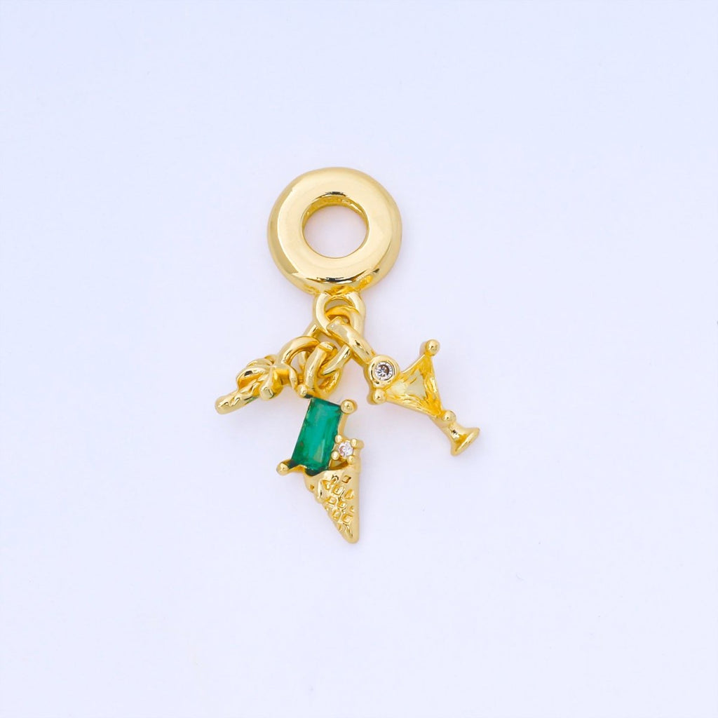 24K Gold Filled Summer Ice Cream Martini Palm Tree Rondelle Drop Pendant | AF1568