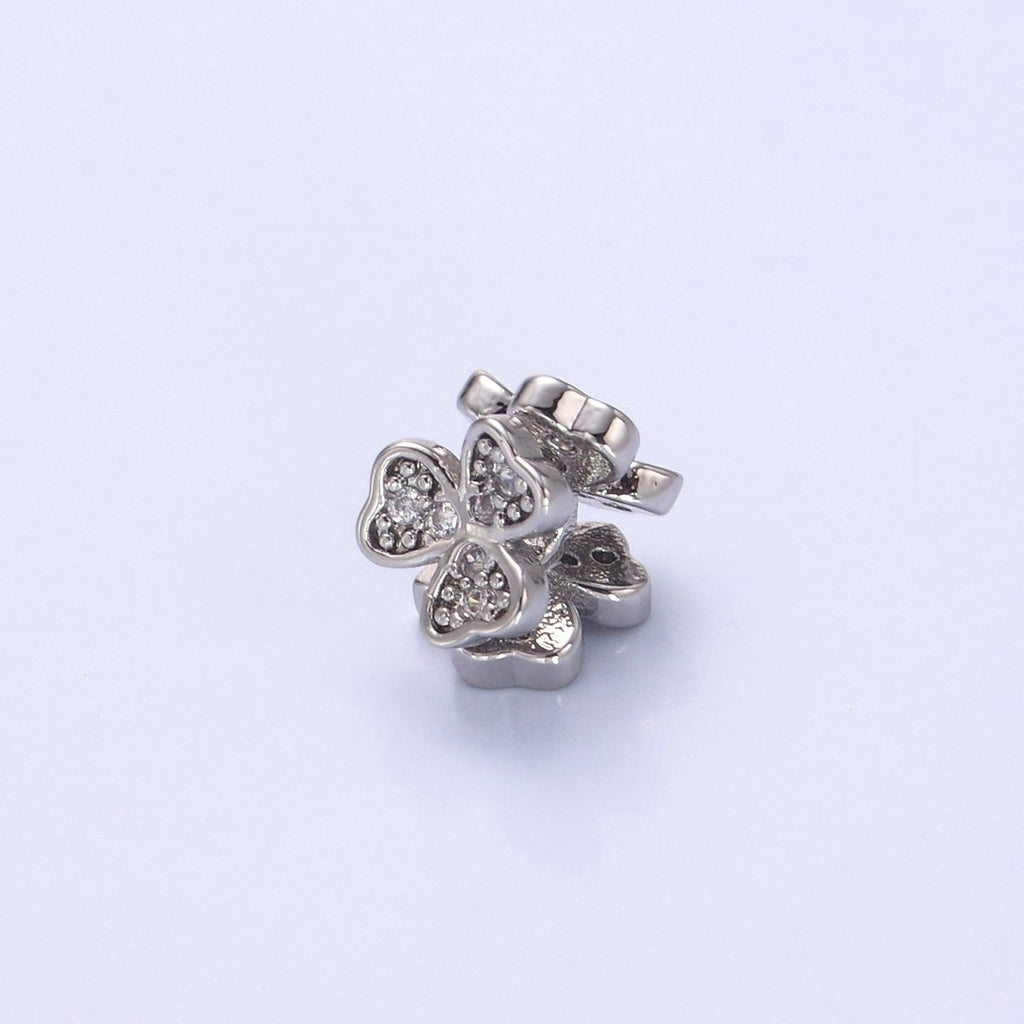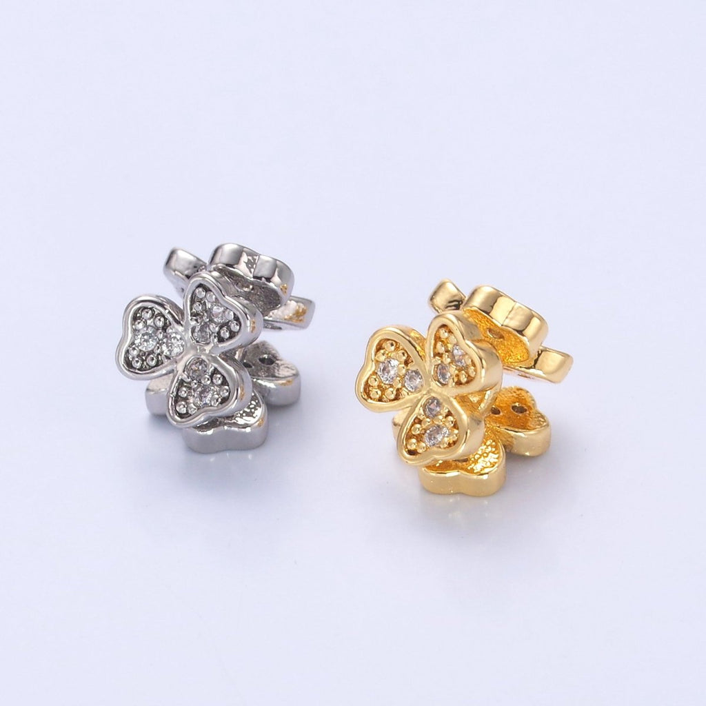 24K Gold Filled Micro Paved CZ Clover Flower Bead in Gold & Silver | B647