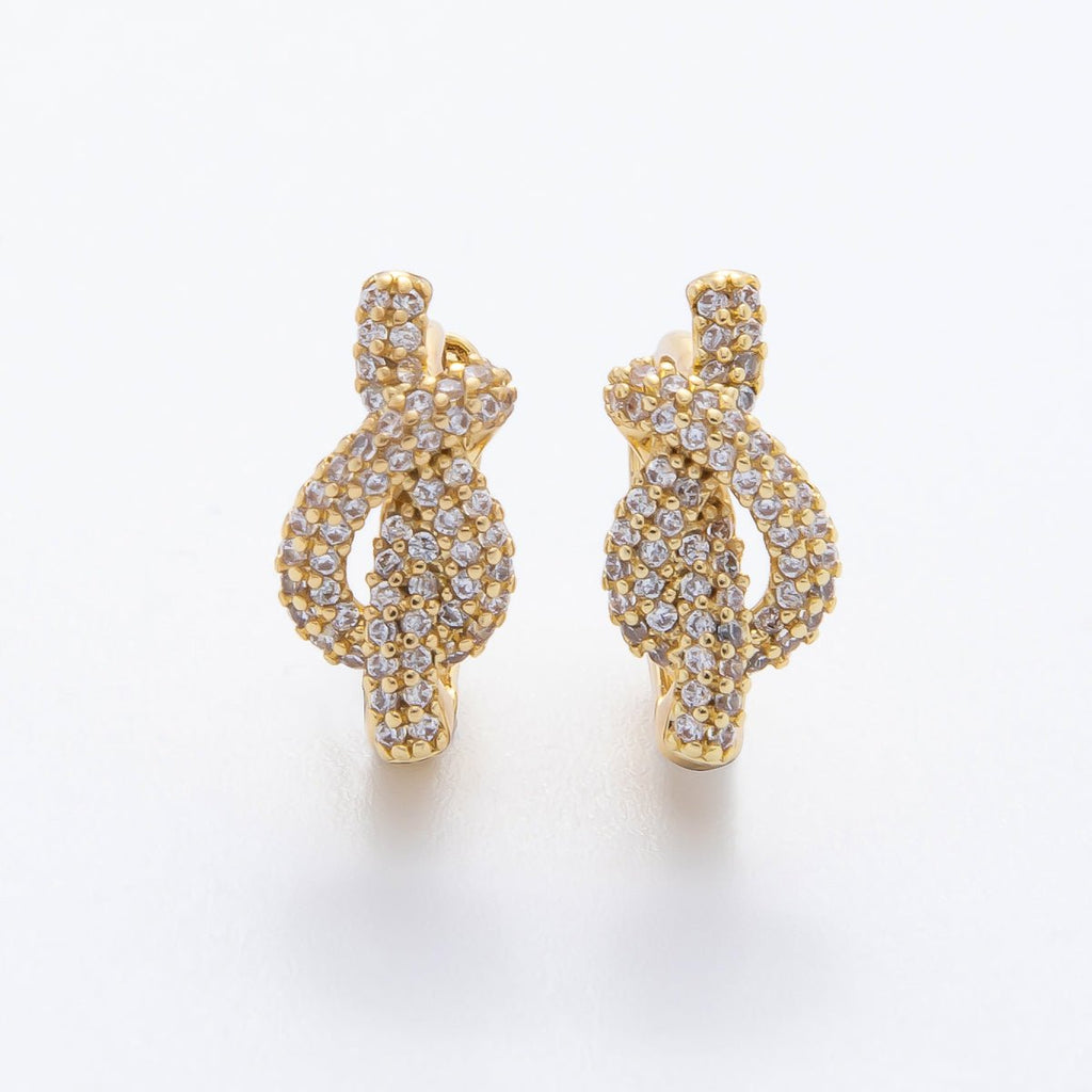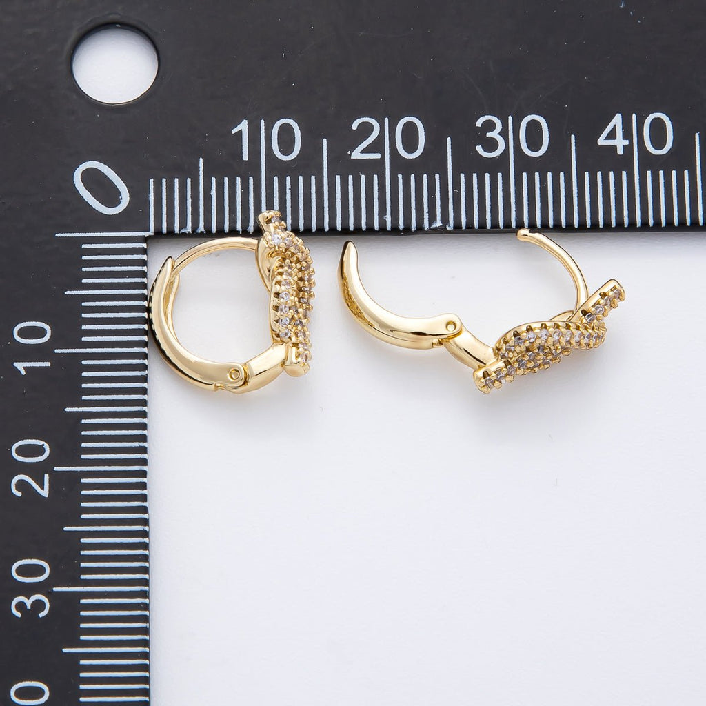14K Gold Filled Micro Paved CZ Glamorous Crossed-Bow Latch Back Huggie Earrings | AJ232