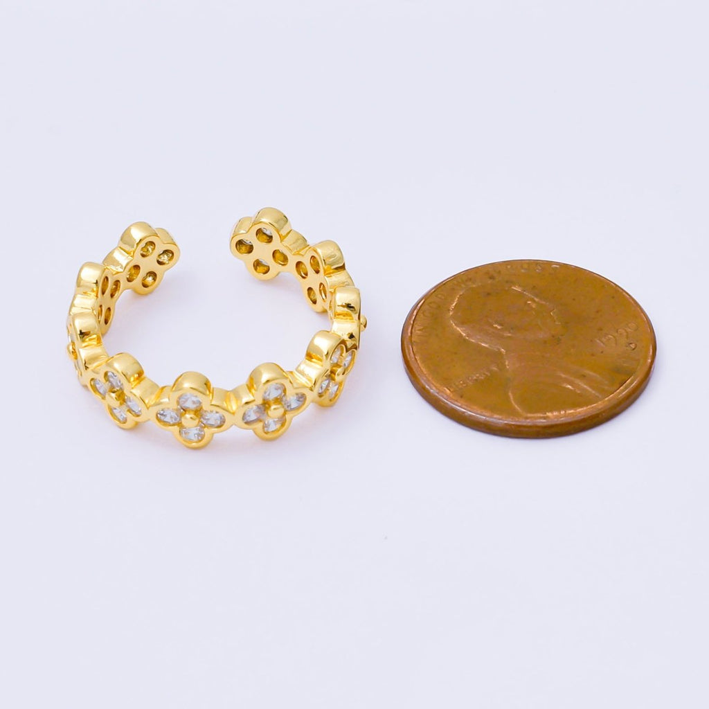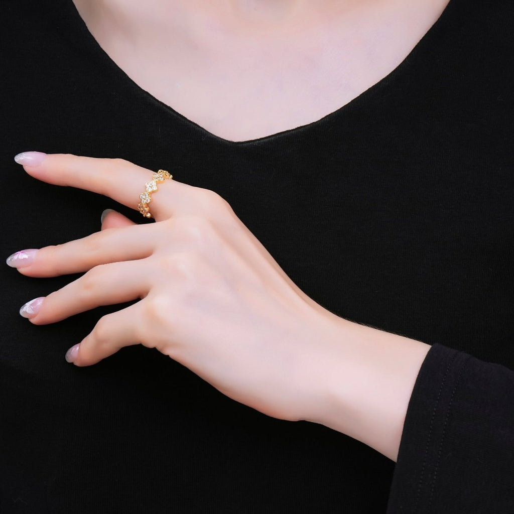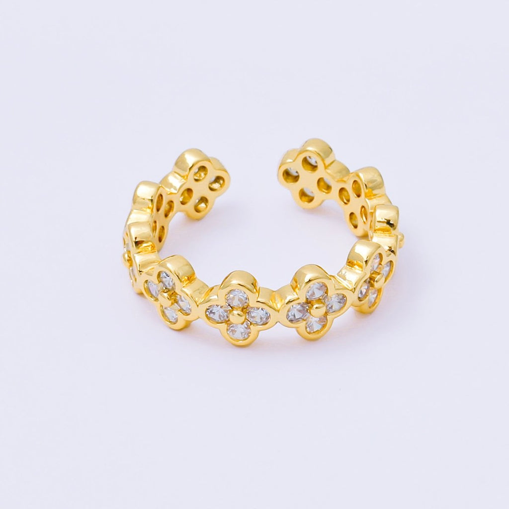 24K Gold Filled Micro Paved CZ Lucky Clover Loop Round Open Ring | O069