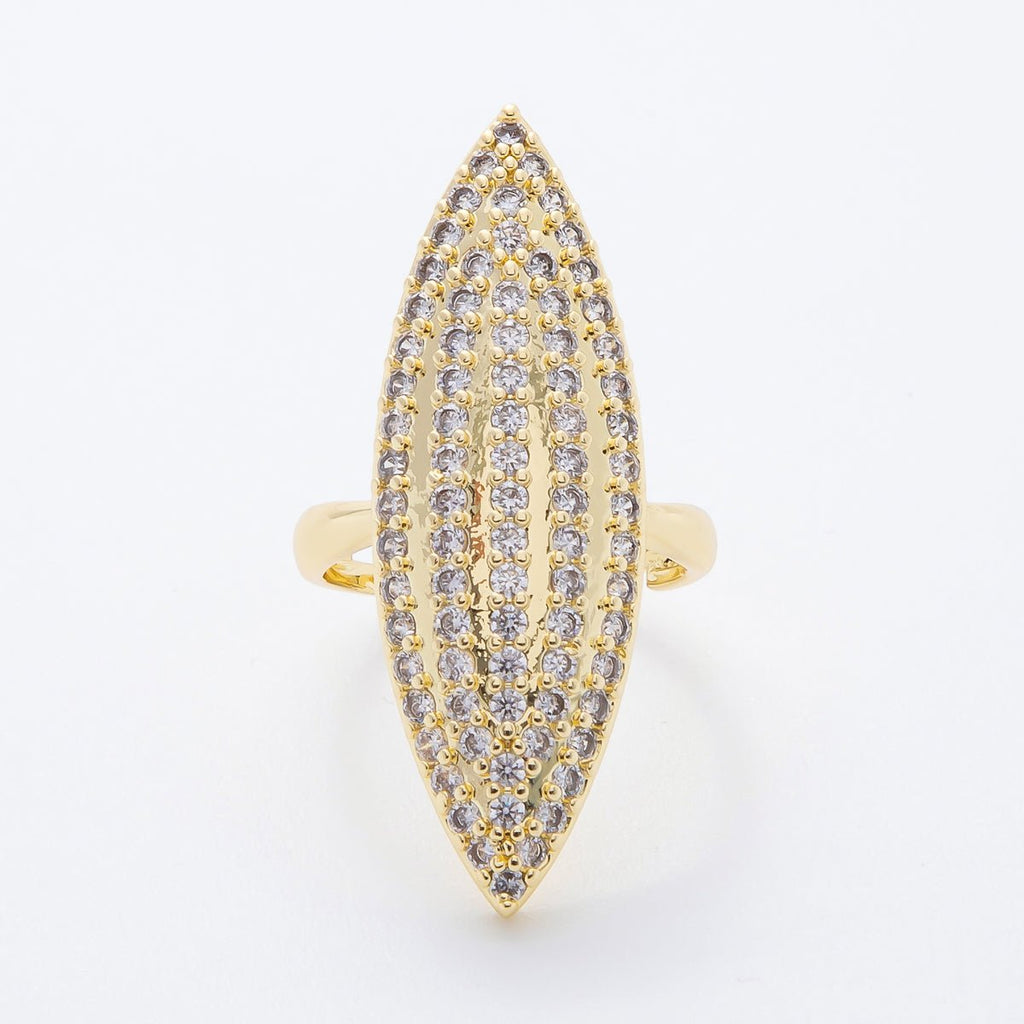 14K Gold Filled Micro Paved CZ Oval Marquise-Shaped Statement Solitaire Ring | O562