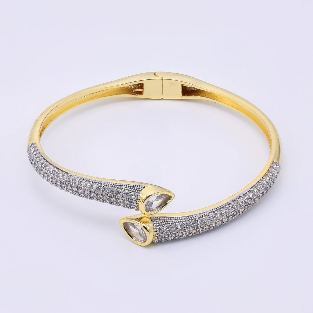 24K Gold Filled Teardrop CZ Micro Paved Wrap Bangle Bracelet | WA-1463